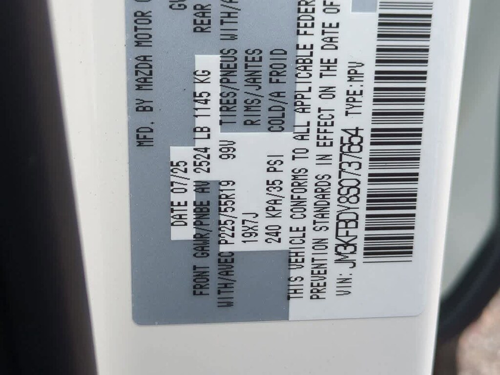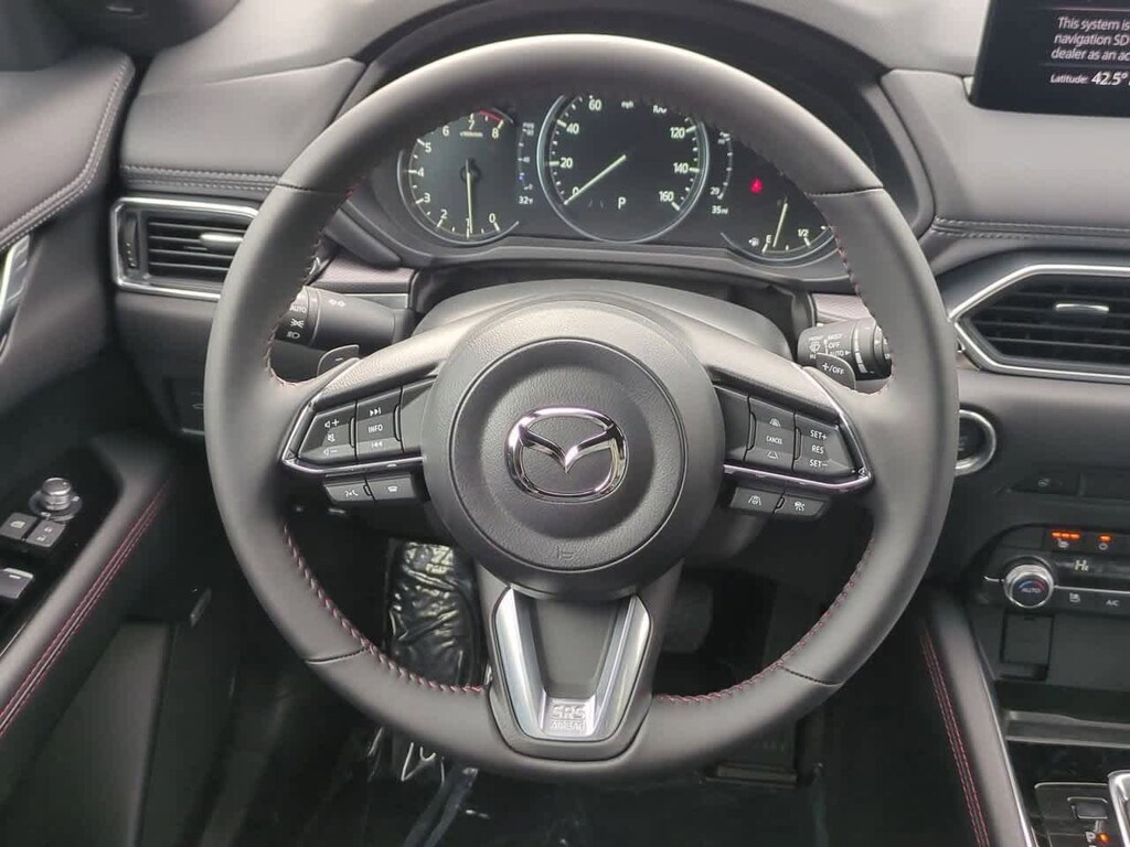10 Speakers, 4-Wheel Disc Brakes, ABS brakes, Air Conditioning, All-Weather Floor Mats, Alloy wheels, AM/FM radio: SiriusXM, AppLink/Apple CarPlay and Android Auto, Auto High-beam Headlights, Auto-dimming Rear-View mirror, Automatic temperature control, Black Lug Nuts & Black Wheel Locks, Brake assist, Bumpers: body-color, Delay-off headlights, Driver door bin, Driver vanity mirror, Dual front impact airbags, Dual front side impact airbags, E911 Automatic Emergency Notification, Electronic Stability Control, Emergency communication system: MAZDA CONNECT, Four wheel independent suspension, Front anti-roll bar, Front Bucket Seats, Front Center Armrest w/Storage, Front dual zone A/C, Front reading lights, Fully automatic headlights, Garage door transmitter: HomeLink, Heads-Up Display, Heated door mirrors, Heated front seats, Heated rear seats, Heated steering wheel, Heated/Ventilated Front Bucket Seats, Illuminated entry, Infotainment System Voice Command, Leather Seat Trim, Leather Shift Knob, Leather steering wheel, Low tire pressure warning, Memory seat, Multifunction Commander Control, Occupant sensing airbag, Outside temperature display, Overhead airbag, Overhead console, Pandora, Panic alarm, Passenger door bin, Passenger vanity mirror, Power door mirrors, Power driver seat, Power Liftgate, Power moonroof, Power passenger seat, Power steering, Power windows, Radio Broadcast Data System Program Information, Radio data system, Radio: AM/FM/HD Audio System, Rain sensing wipers, Rear anti-roll bar, Rear reading lights, Rear seat center armrest, Rear window defroster, Rear window wiper, Remote keyless entry, Retractable Cargo Cover, Rhodium White Metallic Paint, SMS Text Msg Audio Delivery & Reply, Speed control, Speed-sensing steering, Split folding rear seat, Spoiler, Steering wheel mounted audio controls, Tachometer, Telescoping steering wheel, Tilt steering wheel, Traction control, Trip computer, Turn signal indicator mirrors, Variably intermittent wipers, Ventilated front seats, and Wheels: 19 x 7J Aluminum Alloy. Price includes: $2500 - Customer Cash. Exp. 03/02/2026