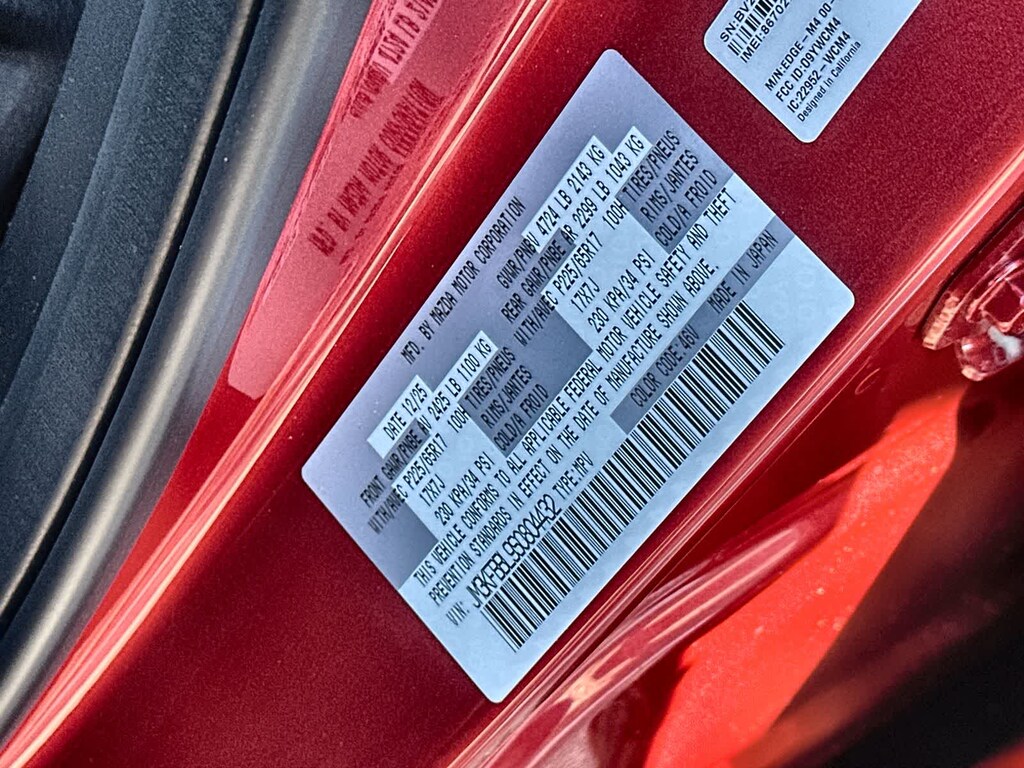 4-Wheel Disc Brakes, 6 Speakers, ABS brakes, Air Conditioning, All-Weather Floor Mats, Alloy wheels, AM/FM radio, AppLink/Apple CarPlay and Android Auto, Auto High-beam Headlights, Automatic temperature control, Brake assist, Bumpers: body-color, Cargo Tray, Delay-off headlights, Driver door bin, Driver vanity mirror, Dual front impact airbags, Dual front side impact airbags, E911 Automatic Emergency Notification, Electronic Stability Control, Emergency communication system: MAZDA CONNECT, Exterior Parking Camera Rear, First Aid Kit, Four wheel independent suspension, Front anti-roll bar, Front Bucket Seats, Front Center Armrest w/Storage, Front dual zone A/C, Front reading lights, Fully automatic headlights, Heated Front Bucket Seats, Heated front seats, Illuminated entry, Infotainment System Voice Command, Leather Shift Knob, Leather steering wheel, Leatherette Seat Trim, Low tire pressure warning, Multifunction Commander Control, Occupant sensing airbag, Outside temperature display, Overhead airbag, Overhead console, Pandora, Panic alarm, Passenger door bin, Passenger vanity mirror, Power door mirrors, Power driver seat, Power steering, Power windows, Radio Broadcast Data System Program Information, Radio data system, Radio: AM/FM/HD Audio System, Rain sensing wipers, Rear anti-roll bar, Rear reading lights, Rear seat center armrest, Rear window defroster, Rear window wiper, Remote keyless entry, SMS Text Msg Audio Delivery & Reply, Soul Red Crystal Metallic Paint, Speed control, Speed-sensing steering, Split folding rear seat, Spoiler, Steering wheel mounted audio controls, Tachometer, Telescoping steering wheel, Tilt steering wheel, Traction control, Trip computer, Turn signal indicator mirrors, Variably intermittent wipers, and Wheels: 17 x 7J Aluminum Alloy. 23/29 City/Highway MPG Price includes: $2000 - Customer Cash. Exp. 02/02/2026
