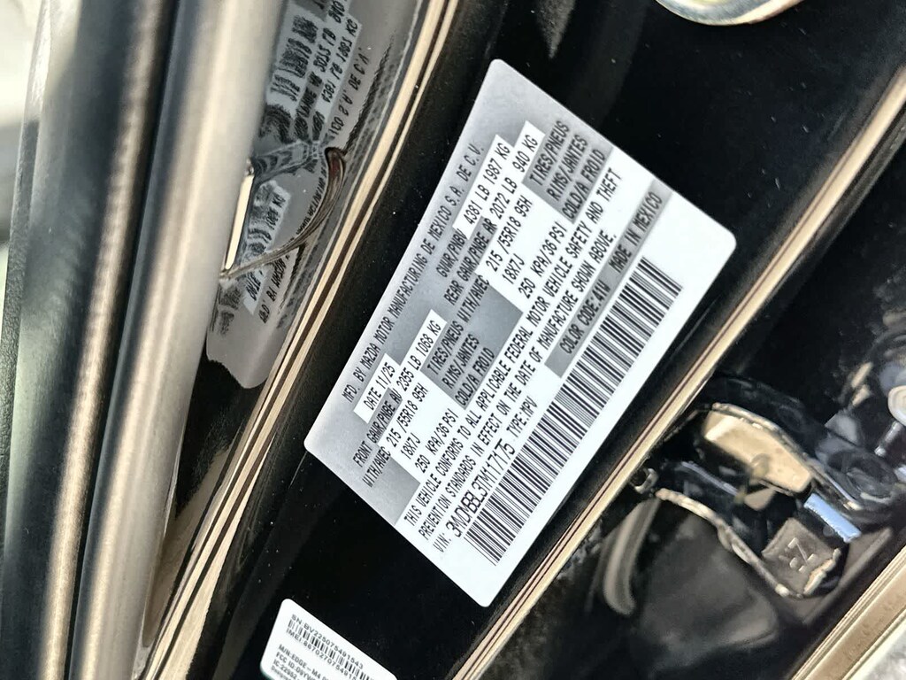 4-Wheel Disc Brakes, 8 Speakers, ABS brakes, Air Conditioning, Alloy wheels, AM/FM radio, AppLink/Apple CarPlay and Android Auto, Auto High-beam Headlights, Automatic temperature control, Brake assist, Bumpers: body-color, Cargo Tray, Compass, Delay-off headlights, Driver door bin, Driver vanity mirror, Dual front impact airbags, Dual front side impact airbags, Electronic Stability Control, Emergency communication system: MAZDA CONNECT, Exterior Parking Camera Rear, Front anti-roll bar, Front Bucket Seats, Front Center Armrest, Front dual zone A/C, Front reading lights, Front wheel independent suspension, Fully automatic headlights, Heated door mirrors, Heated Front Bucket Seats, Heated front seats, High Wall All-Weather Floor Mats, Illuminated entry, Knee airbag, Leather Shift Knob, Leather steering wheel, Leatherette Seat Trim, Low tire pressure warning, MAZDA CONNECT Infotainment System, Memory seat, Occupant sensing airbag, Outside temperature display, Overhead airbag, Overhead console, Panic alarm, Passenger door bin, Passenger vanity mirror, Power door mirrors, Power driver seat, Power steering, Power windows, Radio data system, Radio: AM/FM Audio System, Rear seat center armrest, Rear side impact airbag, Rear window defroster, Rear window wiper, Remote keyless entry, Speed control, Speed-sensing steering, Split folding rear seat, Spoiler, Steering wheel mounted audio controls, Tachometer, Telescoping steering wheel, Tilt steering wheel, Traction control, Trip computer, Turn signal indicator mirrors, Variably intermittent wipers, and Wheels: 18 x 7J Aluminum Alloy. 24/31 City/Highway MPG Price includes: $1000 - Customer Cash. Exp. 03/02/2026