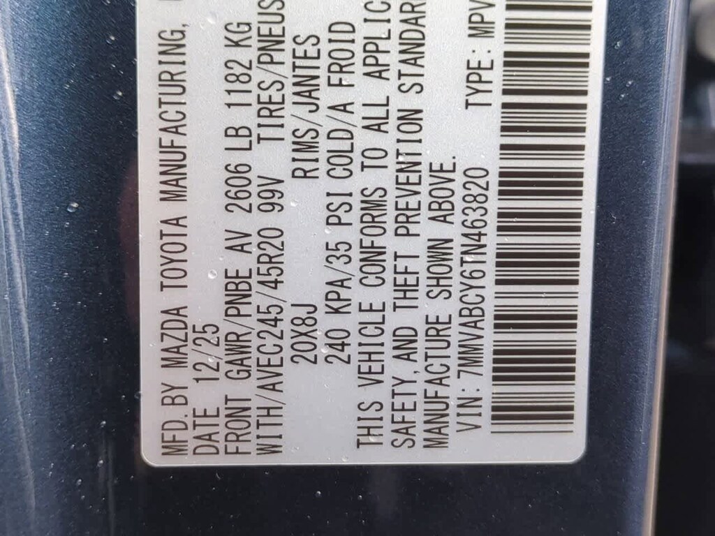 Cargo Package, 12 Speakers, 4-Wheel Disc Brakes, ABS brakes, Air Conditioning, Alloy wheels, AM/FM radio: SiriusXM, AppLink/Apple CarPlay and Android Auto, Auto High-beam Headlights, Auto-dimming Rear-View mirror, Automatic temperature control, Brake assist, Bumpers: body-color, Delay-off headlights, Driver door bin, Driver vanity mirror, Dual front impact airbags, Dual front side impact airbags, Electronic Stability Control, Emergency communication system: MAZDA CONNECT, Exterior Parking Camera Rear, Front anti-roll bar, Front Bucket Seats, Front Center Armrest, Front dual zone A/C, Front reading lights, Front wheel independent suspension, Fully automatic headlights, Garage door transmitter: HomeLink, Heads-Up Display, Heated and Ventilated Front Seats with 3 Level Adjustment, Heated door mirrors, Heated front seats, Illuminated entry, Ingot Blue Metallic and White Interior, Knee airbag, Leather Seat Trim, Leather Shift Knob, Leather steering wheel, Low tire pressure warning, Memory seat, Occupant sensing airbag, Outside temperature display, Overhead airbag, Overhead console, Panic alarm, Passenger door bin, Passenger vanity mirror, Power door mirrors, Power driver seat, Power Liftgate, Power moonroof, Power passenger seat, Power steering, Power windows, Radio data system, Radio: AM/FM/HD Bose 12-Speaker Audio Sound System, Rain sensing wipers, Rear seat center armrest, Rear window defroster, Rear window wiper, Remote keyless entry, Speed control, Speed-sensing steering, Split folding rear seat, Spoiler, Steering wheel mounted audio controls, Tachometer, Telescoping steering wheel, Tilt steering wheel, Traction control, Trip computer, Turn signal indicator mirrors, Variably intermittent wipers, Ventilated front seats, and Wheels: 20 x 8J Aluminum Alloy Black Metallic with Machining Cut. Price includes: $1500 - Customer Cash. Exp. 03/02/2026