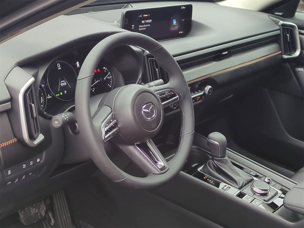 Weather Package (Cargo Liner w/Seatback Protection), 2.5L 4-Cylinder, 12 Speakers, 4-Wheel Disc Brakes, ABS brakes, Air Conditioning, Alloy wheels, AM/FM radio: SiriusXM, AppLink/Apple CarPlay and Android Auto, Auto High-beam Headlights, Auto-dimming Rear-View mirror, Automatic temperature control, Black Lug Nuts & Black Wheel Locks, Brake assist, Bumpers: body-color, Delay-off headlights, Driver door bin, Driver vanity mirror, Dual front impact airbags, Dual front side impact airbags, Electronic Stability Control, Emergency communication system: MAZDA CONNECT, Exterior Parking Camera Rear, Front & Rear Splash Guards, Front anti-roll bar, Front Bucket Seats, Front Center Armrest, Front dual zone A/C, Front reading lights, Front wheel independent suspension, Fully automatic headlights, Heated door mirrors, Heated front seats, Heated/Ventilated Front Seats w/3 Level Adjustment, Illuminated entry, Knee airbag, Leather Seat Trim, Leather Shift Knob, Leather steering wheel, Life Style Mount, Low tire pressure warning, Machine Gray Metallic Paint Charge, Memory seat, Occupant sensing airbag, Outside temperature display, Overhead airbag, Overhead console, Panic alarm, Passenger door bin, Passenger vanity mirror, Power door mirrors, Power driver seat, Power Liftgate, Power moonroof, Power passenger seat, Power steering, Power windows, Radio data system, Radio: AM/FM/HD Bose 12-Speaker Audio Sound System, Rain sensing wipers, Rear seat center armrest, Rear window defroster, Rear window wiper, Remote keyless entry, Speed control, Speed-sensing steering, Split folding rear seat, Spoiler, Steering wheel mounted audio controls, Tachometer, Telescoping steering wheel, Tilt steering wheel, Traction control, Trip computer, Turn signal indicator mirrors, Variably intermittent wipers, Ventilated front seats, and Wheels: 17 x 7J Aluminum Alloy Black Metallic Finish. Price includes: $2500 - Customer Cash. Exp. 03/02/2026
