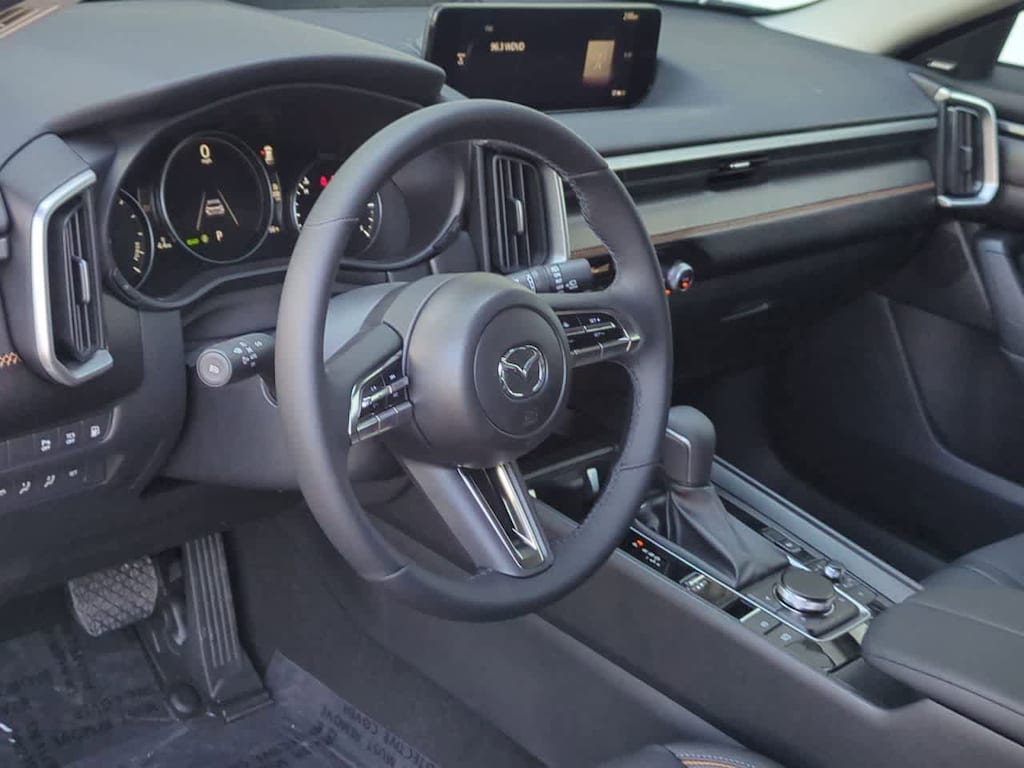 Weather Package (Cargo Liner w/Seatback Protection), 2.5L 4-Cylinder, 12 Speakers, 4-Wheel Disc Brakes, ABS brakes, Air Conditioning, Alloy wheels, AM/FM radio: SiriusXM, AppLink/Apple CarPlay and Android Auto, Auto High-beam Headlights, Auto-dimming Rear-View mirror, Automatic temperature control, Black Lug Nuts & Black Wheel Locks, Brake assist, Bumpers: body-color, Delay-off headlights, Driver door bin, Driver vanity mirror, Dual front impact airbags, Dual front side impact airbags, Electronic Stability Control, Emergency communication system: MAZDA CONNECT, Exterior Parking Camera Rear, Front & Rear Splash Guards, Front anti-roll bar, Front Bucket Seats, Front Center Armrest, Front dual zone A/C, Front reading lights, Front wheel independent suspension, Fully automatic headlights, Heated door mirrors, Heated front seats, Heated/Ventilated Front Seats w/3 Level Adjustment, Illuminated entry, Knee airbag, Leather Seat Trim, Leather Shift Knob, Leather steering wheel, Low tire pressure warning, Memory seat, Occupant sensing airbag, Outside temperature display, Overhead airbag, Overhead console, Panic alarm, Passenger door bin, Passenger vanity mirror, Power door mirrors, Power driver seat, Power Liftgate, Power moonroof, Power passenger seat, Power steering, Power windows, Radio data system, Radio: AM/FM/HD Bose 12-Speaker Audio Sound System, Rain sensing wipers, Rear seat center armrest, Rear window defroster, Rear window wiper, Remote keyless entry, Speed control, Speed-sensing steering, Split folding rear seat, Spoiler, Steering wheel mounted audio controls, Tachometer, Telescoping steering wheel, Tilt steering wheel, Traction control, Trip computer, Turn signal indicator mirrors, Variably intermittent wipers, Ventilated front seats, Wheels: 17 x 7J Aluminum Alloy Black Metallic Finish, and Wind Chill Pearl Paint Charge. Price includes: $2500 - Customer Cash. Exp. 03/31/2026