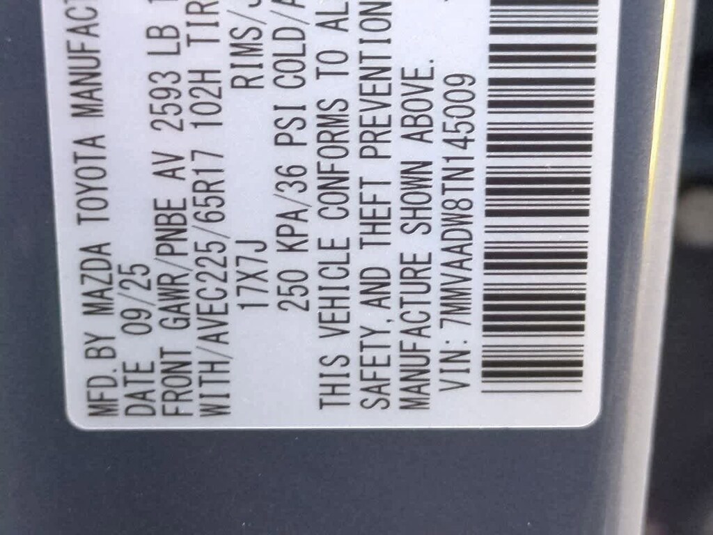 Weather Package, 2.5L 4-Cylinder, 12 Speakers, 4-Wheel Disc Brakes, ABS brakes, Air Conditioning, Alloy wheels, AM/FM radio: SiriusXM, AppLink/Apple CarPlay and Android Auto, Auto High-beam Headlights, Auto-dimming Rear-View mirror, Automatic temperature control, Black Lug Nuts and Black Wheel Locks, Brake assist, Bumpers: body-color, Delay-off headlights, Driver door bin, Driver vanity mirror, Dual front impact airbags, Dual front side impact airbags, Electronic Stability Control, Emergency communication system: MAZDA CONNECT, Exterior Parking Camera Rear, Front and Rear Splash Guards, Front anti-roll bar, Front Bucket Seats, Front Center Armrest, Front dual zone A/C, Front reading lights, Front wheel independent suspension, Fully automatic headlights, Heated and Ventilated Front Seats with 3 Level Adjustment, Heated door mirrors, Heated front seats, Illuminated entry, Knee airbag, Leather Seat Trim, Leather Shift Knob, Leather steering wheel, Low tire pressure warning, Memory seat, Occupant sensing airbag, Outside temperature display, Overhead airbag, Overhead console, Panic alarm, Passenger door bin, Passenger vanity mirror, Polymetal Gray Metallic Paint Charge, Power door mirrors, Power driver seat, Power Liftgate, Power moonroof, Power passenger seat, Power steering, Power windows, Radio data system, Radio: AM/FM/HD Bose 12-Speaker Audio Sound System, Rain sensing wipers, Rear seat center armrest, Rear window defroster, Rear window wiper, Remote keyless entry, Speed control, Speed-sensing steering, Split folding rear seat, Spoiler, Steering wheel mounted audio controls, Tachometer, Telescoping steering wheel, Tilt steering wheel, Traction control, Trip computer, Turn signal indicator mirrors, Variably intermittent wipers, Ventilated front seats, and Wheels: 17 x 7J Aluminum Alloy Black Metallic Finish. Price includes: $2500 - Customer Cash. Exp. 03/02/2026