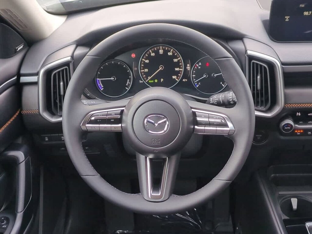 Weather Package, 2.5L 4-Cylinder, 12 Speakers, 4-Wheel Disc Brakes, ABS brakes, Air Conditioning, Alloy wheels, AM/FM radio: SiriusXM, AppLink/Apple CarPlay and Android Auto, Auto High-beam Headlights, Auto-dimming Rear-View mirror, Automatic temperature control, Brake assist, Bumpers: body-color, Delay-off headlights, Driver door bin, Driver vanity mirror, Dual front impact airbags, Dual front side impact airbags, Electronic Stability Control, Emergency communication system: MAZDA CONNECT, Exterior Parking Camera Rear, Front anti-roll bar, Front Bucket Seats, Front Center Armrest, Front dual zone A/C, Front reading lights, Front wheel independent suspension, Fully automatic headlights, Heated and Ventilated Front Seats with 3 Level Adjustment, Heated door mirrors, Heated front seats, Illuminated entry, Knee airbag, Leather Seat Trim, Leather Shift Knob, Leather steering wheel, Life Style Mount, Low tire pressure warning, Memory seat, Occupant sensing airbag, Outside temperature display, Overhead airbag, Overhead console, Panic alarm, Passenger door bin, Passenger vanity mirror, Power door mirrors, Power driver seat, Power Liftgate, Power moonroof, Power passenger seat, Power steering, Power windows, Radio data system, Radio: AM/FM/HD Bose 12-Speaker Audio Sound System, Rain sensing wipers, Rear seat center armrest, Rear window defroster, Rear window wiper, Remote keyless entry, Speed control, Speed-sensing steering, Split folding rear seat, Spoiler, Steering wheel mounted audio controls, Tachometer, Telescoping steering wheel, Tilt steering wheel, Traction control, Trip computer, Turn signal indicator mirrors, Variably intermittent wipers, Ventilated front seats, and Wheels: 17 x 7J Aluminum Alloy Black Metallic Finish.
