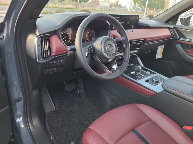 Leather Seats, Navigation, Sunroof, Panoramic Roof, All Wheel Drive, Power Liftgate, Rear Air, Heated Driver Seat, Heated Rear Seat, Cooled Driver Seat, Back-Up Camera, Turbocharged, Premium Sound System, Satellite Radio, iPod/MP3 Input Mazda CX-70 3.3 Turbo S Premium with Polymetal Gray Metallic exterior and Red interior features a Straight 6 Cylinder Engine with 340 HP at 5000 RPM*. Rear Spoiler, MP3 Player.