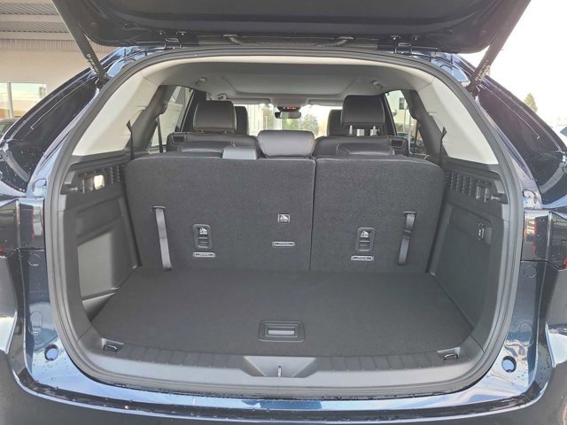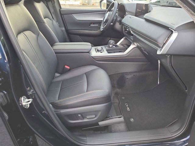 Leather Seats, Third Row Seat, Navigation, Sunroof, Panoramic Roof, All Wheel Drive, Power Liftgate, Rear Air, Heated Driver Seat, Heated Rear Seat, Cooled Driver Seat, Back-Up Camera, Turbocharged, Premium Sound System, Satellite Radio Mazda CX-90 Premium Sport with Deep Crystal Blue Mica exterior and Black interior features a Straight 6 Cylinder Engine with 280 HP at 5000 RPM*. Rear Spoiler, MP3 Player.