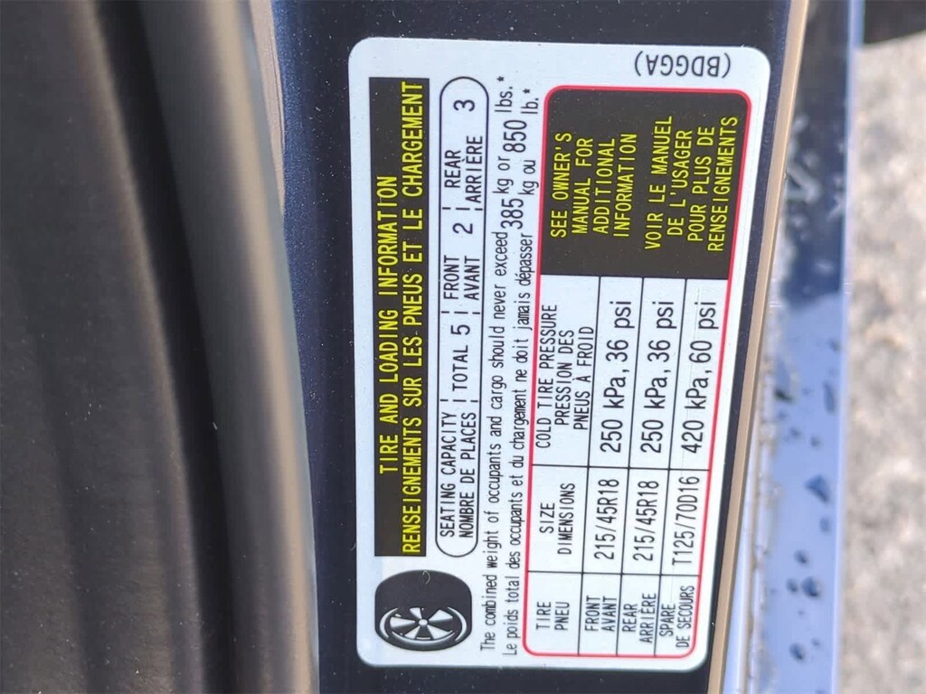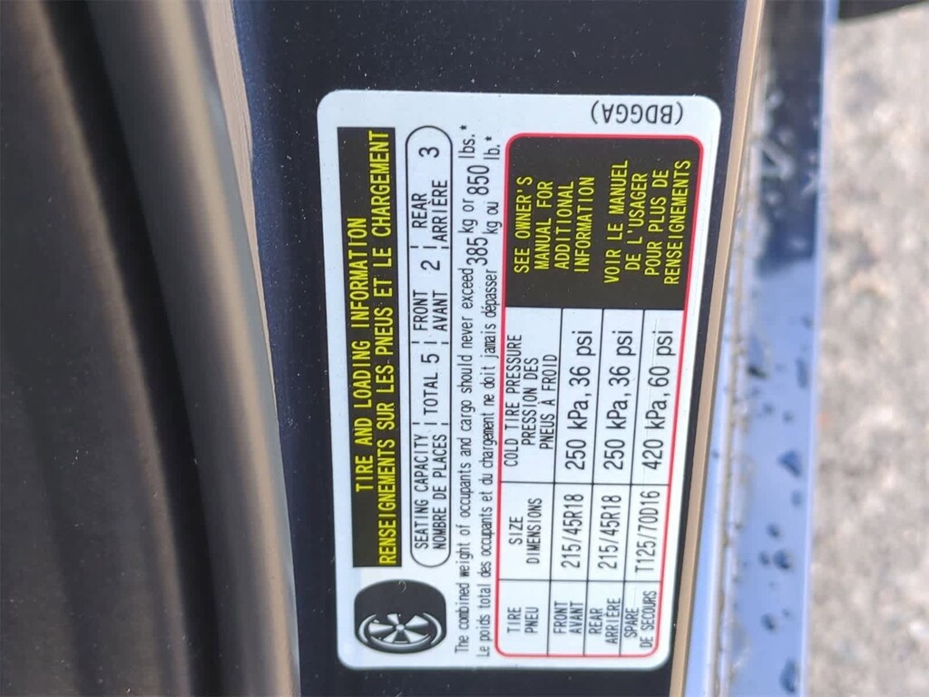 - Front tires: 215/45VR18.0