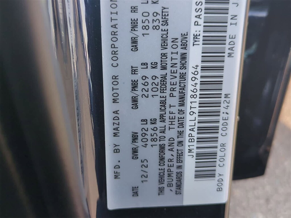 4-Wheel Disc Brakes, 8 Speakers, ABS brakes, Air Conditioning, Alloy wheels, AM/FM radio, AppLink/Apple CarPlay and Android Auto, Auto High-beam Headlights, Automatic temperature control, Brake assist, Bumpers: body-color, Compass, Delay-off headlights, Driver door bin, Driver vanity mirror, Dual front impact airbags, Dual front side impact airbags, Electronic Stability Control, Emergency communication system, Exterior Parking Camera Rear, Front anti-roll bar, Front Bucket Seats, Front Center Armrest, Front dual zone A/C, Front reading lights, Front wheel independent suspension, Fully automatic headlights, Heated door mirrors, Heated Front Bucket Seats, Heated front seats, High Wall All-Weather Floor Mats, Illuminated entry, Knee airbag, Leather Shift Knob, Leather steering wheel, Leatherette Seat Trim, Low tire pressure warning, MAZDA CONNECT Infotainment System, Memory seat, Occupant sensing airbag, Outside temperature display, Overhead airbag, Overhead console, Panic alarm, Passenger door bin, Passenger vanity mirror, Power door mirrors, Power driver seat, Power moonroof, Power steering, Power windows, Radio data system, Radio: AM/FM Audio System, Rain sensing wipers, Rear seat center armrest, Rear side impact airbag, Rear window defroster, Rear window wiper, Remote keyless entry, Speed control, Speed-sensing steering, Split folding rear seat, Spoiler, Steering wheel mounted audio controls, Tachometer, Telescoping steering wheel, Tilt steering wheel, Traction control, Trip computer, Turn signal indicator mirrors, Variably intermittent wipers, Wheel Locks, and Wheels: 18 x 7J Aluminum Alloy. Price includes: $2000 - Customer Cash. Exp. 03/02/2026