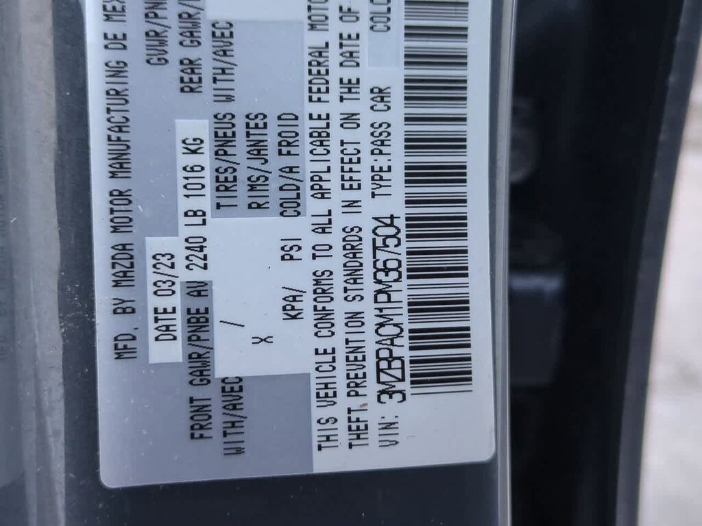 12 Speakers, 4-Wheel Disc Brakes, ABS brakes, Air Conditioning, Alloy wheels, AM/FM radio: SiriusXM, Auto High-beam Headlights, Auto-dimming door mirrors, Auto-dimming Rear-View mirror, Automatic temperature control, Brake assist, Bumpers: body-color, Cargo Tray, Compass, Delay-off headlights, Driver door bin, Driver vanity mirror, Dual front impact airbags, Dual front side impact airbags, Electronic Stability Control, Emergency communication system, Front anti-roll bar, Front Bucket Seats, Front Center Armrest, Front dual zone A/C, Front Illuminated Door Sill Trim Plates, Front reading lights, Front wheel independent suspension, Fully automatic headlights, Garage door transmitter: HomeLink, Heads-Up Display, Heated door mirrors, Heated Front Bucket Seats, Heated front seats, Heated steering wheel, High Wall All-Weather Floor Mats, Illuminated entry, Knee airbag, Leather Seat Trim, Leather Shift Knob, Leather steering wheel, Low tire pressure warning, Machine Gray Metallic Paint Charge, MAZDA CONNECT Infotainment System, Memory seat, Navigation system: Mazda Online Navigation, Occupant sensing airbag, Outside temperature display, Overhead airbag, Overhead console, Panic alarm, Passenger door bin, Passenger vanity mirror, Power door mirrors, Power driver seat, Power moonroof, Power steering, Power windows, Radio data system, Radio: AM/FM/HD Audio System, Rain sensing wipers, Rear seat center armrest, Rear side impact airbag, Rear window defroster, Rear window wiper, Remote keyless entry, Speed control, Speed-sensing steering, Split folding rear seat, Spoiler, Steering wheel mounted audio controls, Tachometer, Telescoping steering wheel, Tilt steering wheel, Traction control, Trip computer, Turn signal indicator mirrors, Variably intermittent wipers, and Wheels: 18 x 7J Aluminum Alloy. Price includes: $2000 - Customer Cash. Exp. 03/02/2026