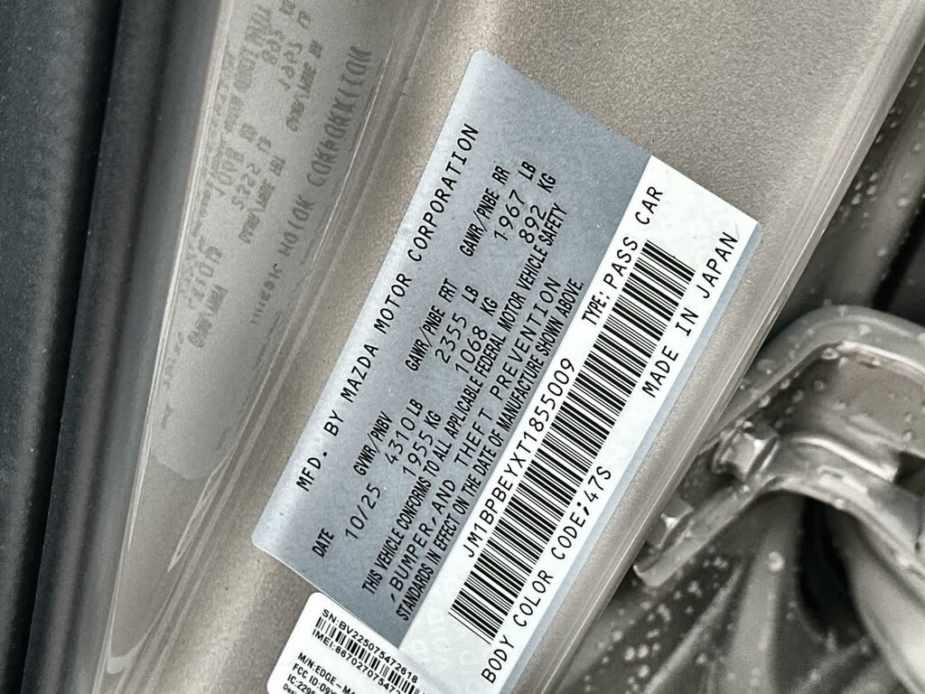 12 Speakers, 4-Wheel Disc Brakes, ABS brakes, Air Conditioning, Alloy wheels, AM/FM radio: SiriusXM, Auto High-beam Headlights, Auto-dimming door mirrors, Auto-dimming Rear-View mirror, Automatic temperature control, Brake assist, Bumpers: body-color, Compass, Delay-off headlights, Driver door bin, Driver vanity mirror, Dual front impact airbags, Dual front side impact airbags, Electronic Stability Control, Emergency communication system, Front & Rear Splash Guards, Front anti-roll bar, Front Bucket Seats, Front Center Armrest, Front dual zone A/C, Front reading lights, Front wheel independent suspension, Fully automatic headlights, Garage door transmitter: HomeLink, Heads-Up Display, Heated door mirrors, Heated Front Bucket Seats, Heated front seats, Heated steering wheel, High Wall All-Weather Floor Mats, Illuminated entry, Knee airbag, Leather Seat Trim, Leather Shift Knob, Leather steering wheel, Low tire pressure warning, MAZDA CONNECT Infotainment System, Memory seat, Navigation system: Mazda Online Navigation, Occupant sensing airbag, Outside temperature display, Overhead airbag, Overhead console, Panic alarm, Passenger door bin, Passenger vanity mirror, Power door mirrors, Power driver seat, Power moonroof, Power steering, Power windows, Radio data system, Radio: AM/FM/HD Audio System, Rain sensing wipers, Rear seat center armrest, Rear side impact airbag, Rear window defroster, Remote keyless entry, Speed control, Speed-sensing steering, Split folding rear seat, Spoiler, Steering wheel mounted audio controls, Tachometer, Telescoping steering wheel, Tilt steering wheel, Traction control, Trip computer, Turn signal indicator mirrors, Variably intermittent wipers, Wheel Locks, and Wheels: 18 x 7J Aluminum Alloy. 23/32 City/Highway MPG Price includes: $1500 - Customer Cash. Exp. 02/02/2026