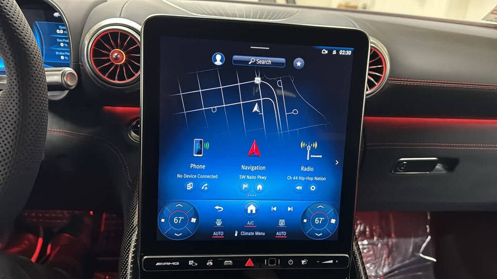 Leather Seats, Navigation, Quad Bucket Seats, Power Liftgate, Heated Driver Seat, Cooled Driver Seat, Back-Up Camera, Turbocharged, Premium Sound System, Satellite Radio, iPod/MP3 Input, Remote Engine Start, Dual Zone A/C, WiFi Hotspot, Hands-Free Liftgate Rear Spoiler, MP3 Player, Automatic Full-Time All-Wheel, Onboard Communications System, Aluminum Wheels. Mercedes-Benz AMG® SL 63 S E Performance with MANUFAKTUR Alpine Grey exterior and Black w/ Red Stitching interior features a 8 Cylinder Engine with 805 HP at 5500 RPM*.