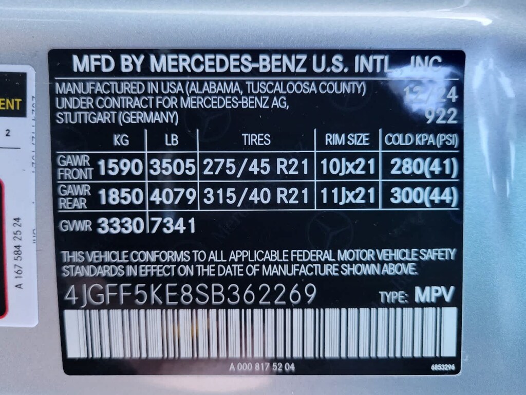 - Front tires: 275/45HR21.0