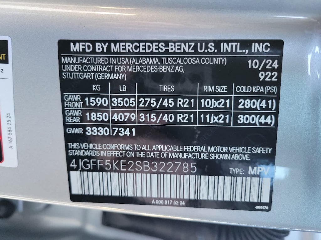- Front tires: 275/45HR21.0