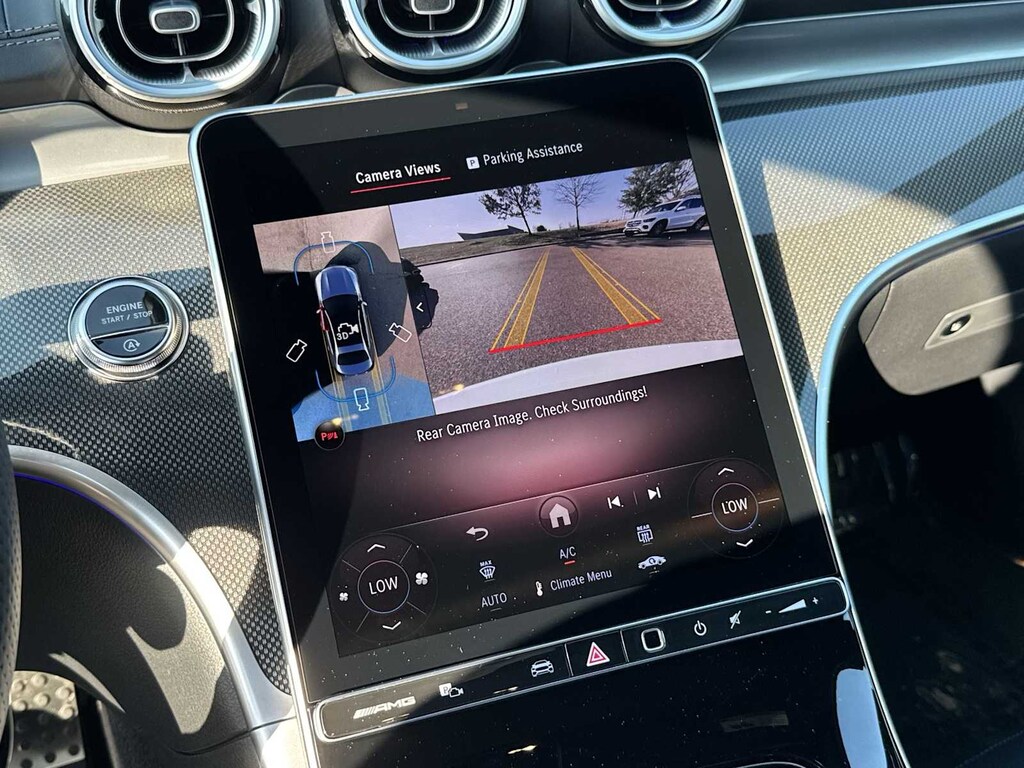 Full-Time All-Wheel, Power Liftgate, Back-Up Camera, iPod/MP3 Input, Onboard Communications System. Mercedes-Benz AMG® C 43 with MANUFAKTUR Moonlight White Metallic exterior and AMG® Black interior features a 4 Cylinder Engine with 416 HP at 6750 RPM*.