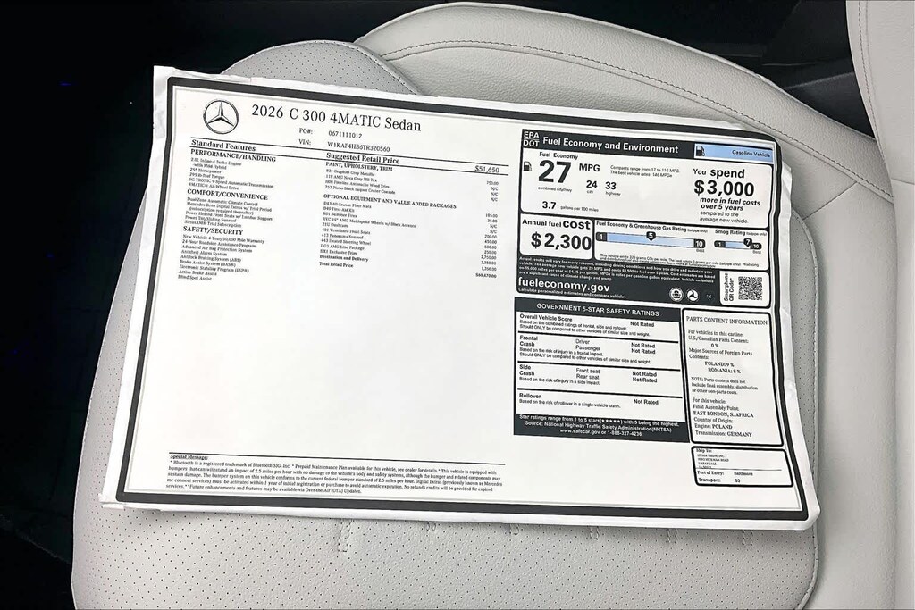 Graphite Grey Metallic 2026 Mercedes-Benz C-Class C 300 4MATICî 4MATICî 9-Speed Automatic 2.0L I4 Turbocharged