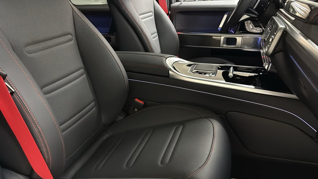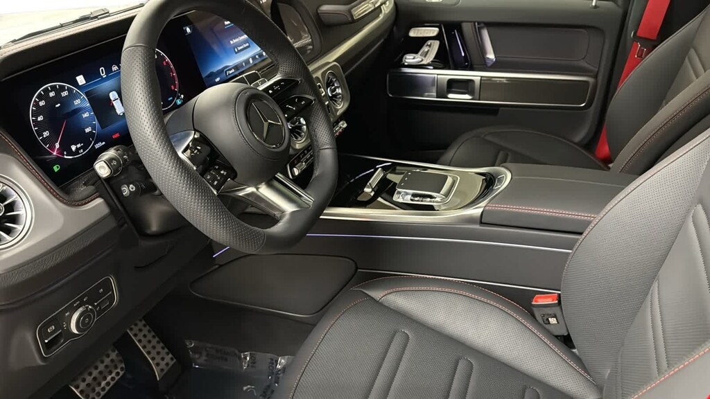 Leather Seats, Navigation, Rear Air, Heated Driver Seat, Heated Rear Seat, Back-Up Camera, Premium Sound System, Satellite Radio, iPod/MP3 Input, Trailer Hitch, Keyless Start, Dual Zone A/C, Lane Keeping Assist, Apple CarPlay®, WiFi Hotspot. MP3 Player, Sunroof, Full-Time 4MATIC® All-Wheel, Onboard Communications System, Keyless Entry. Mercedes-Benz G 550 with Iridium Silver Metallic exterior and Black w/Red Stitching interior features a Straight 6 Cylinder Engine with 443 HP at 6100 RPM*.
