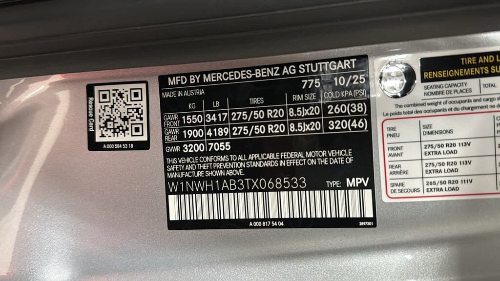 - Rear tires: 275/50VR20.0