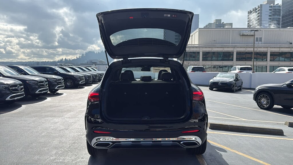 Power Liftgate, Heated Driver Seat, Back-Up Camera, Turbocharged, Satellite Radio, iPod/MP3 Input, Keyless Start, Dual Zone A/C, Hands-Free Liftgate, Brake Actuated Limited Slip Differential, Smart Device Integration, WiFi Hotspot, Cross-Traffic Alert, Blind Spot Monitor, Apple CarPlay® Rear Spoiler, MP3 Player, Full-Time 4MATIC® All-Wheel, Onboard Communications System, Privacy Glass. Mercedes-Benz GLC 300 with AMG® Black interior features a 4 Cylinder Engine with 255 HP at 5800 RPM*.