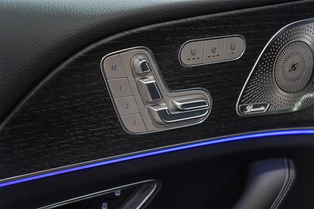 This vehicle includes: 13 Speakers, 20 AMGî Twin 5-Spoke Wheels, 4-Wheel Disc Brakes, ABS brakes, Adaptive suspension, Air Conditioning, Alloy wheels, AM/FM radio: SiriusXM, Anti-whiplash front head restraints, Apple CarPlayî/Android Autoî, Augmented Video For Navigation, Auto High-beam Headlights, Auto tilt-away steering wheel, Auto-dimming door mirrors, Auto-dimming Rear-View mirror, Auto-leveling suspension, Automatic temperature control, Brake assist, Bumpers: body-color, Burmesterî Surround Sound System with Dolby Atmos, Child-Seat-Sensing Airbag, Delay-off headlights, Driver door bin, Driver vanity mirror, Dual front impact airbags, Dual front side impact airbags, Electronic Stability Control, Emergency communication system: eCall Emergency System, Exterior Parking Camera Rear, Four wheel independent suspension, Front anti-roll bar, Front Bucket Seats, Front Center Armrest, Front dual zone A/C, Front reading lights, Fully automatic headlights, Garage door transmitter: HomeLink, Genuine wood console insert, Genuine wood dashboard insert, Genuine wood door panel insert, Heated door mirrors, Heated Front Seats, Heated front seats, HERMES Communications Module LTE, Illuminated entry, Knee airbag, Leather Seat Trim, Leather steering wheel, Low tire pressure warning, MB Navigation, Memory seat, Music Streaming, Navigation system: MBUX, Occupant sensing airbag, Outside temperature display, Overhead airbag, Panic alarm, Passenger door bin, Passenger vanity mirror, Power adjustable front head restraints, Power door mirrors, Power driver seat, Power Front Seats, Power Liftgate, Power moonroof, Power passenger seat, Power steering, Power windows, Premium audio system: MBUX, Radio data system, Radio: 12.3 Media Display with Touchscreen, Rain sensing wipers, Rear anti-roll bar, Rear fog lights, Rear reading lights, Rear seat center armrest, Rear side impact airbag, Rear window defroster, Rear window wiper, Remote keyless entry, Security system, SiriusXM Satellite Radio, Sound Personalization, Speed control, Speed-sensing steering, Speed-Sensitive Wipers, Split folding rear seat, Spoiler, Steering wheel memory, Steering wheel mounted audio controls, Tachometer, Telescoping steering wheel, Tilt steering wheel, Traction control, Trip computer, Turn signal indicator mirrors, Ventilated Front Seats, Ventilated front seats, Weather band radio, Wireless Charging, and Wireless Smartphone Integration