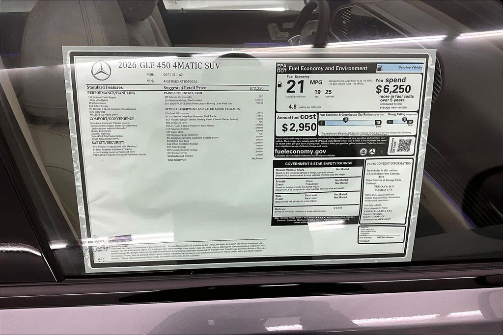 Selenite Grey Metallic 2026 Mercedes-Benz GLE GLE 450 4MATICî 4MATICî 9-Speed Automatic 3.0L I6 Turbo