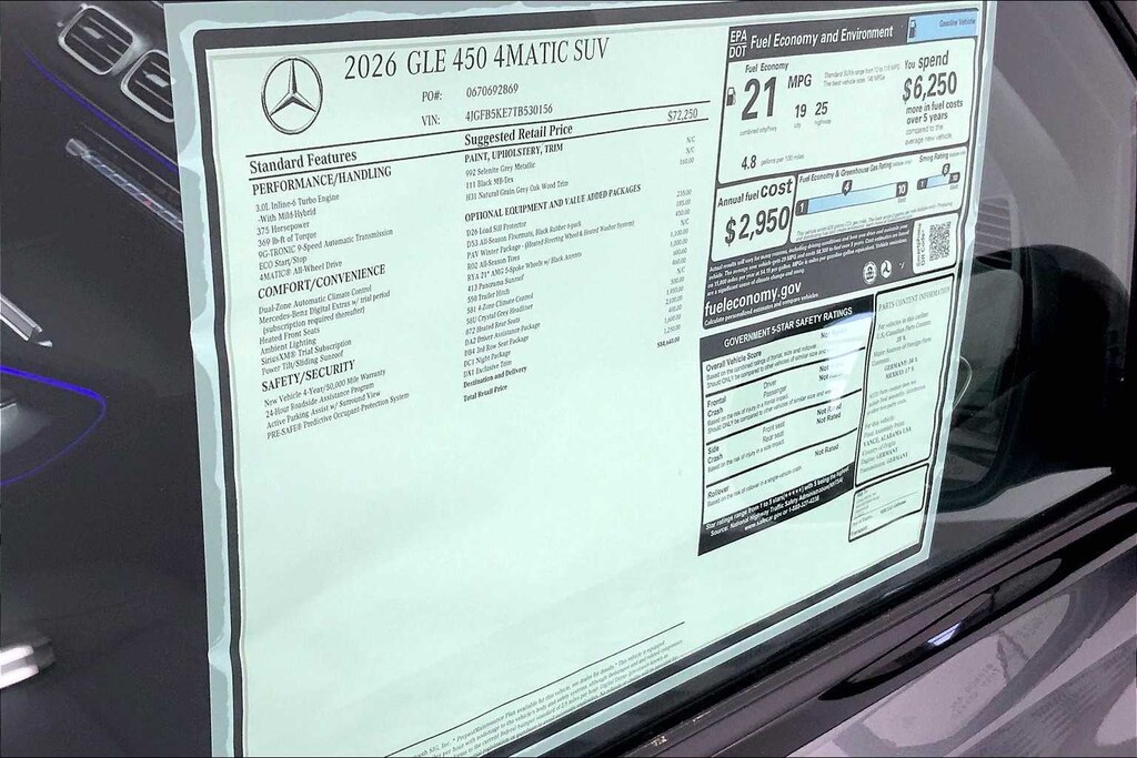 Selenite Grey Metallic 2026 Mercedes-Benz GLE GLE 450 4MATICî 4MATICî 9-Speed Automatic 3.0L I6 Turbo