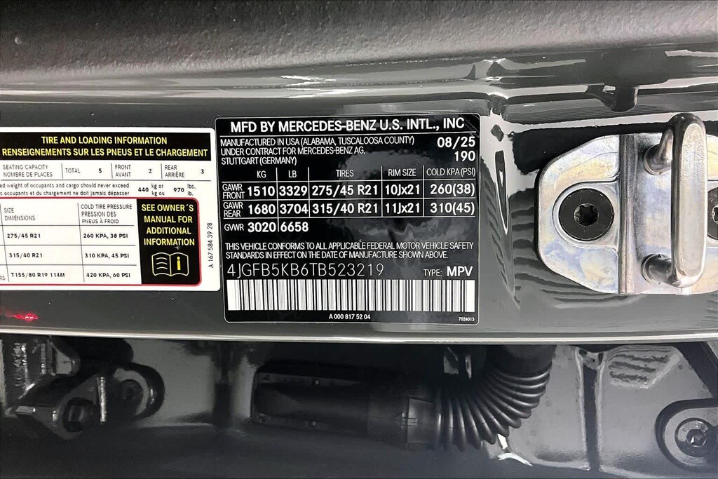 - Front tires: 275/45HR21.0
