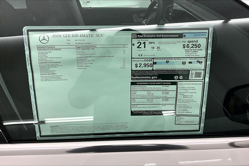 Polar White 2026 Mercedes-Benz GLE GLE 450 4MATICî 4MATICî 9-Speed Automatic 3.0L I6 Turbo