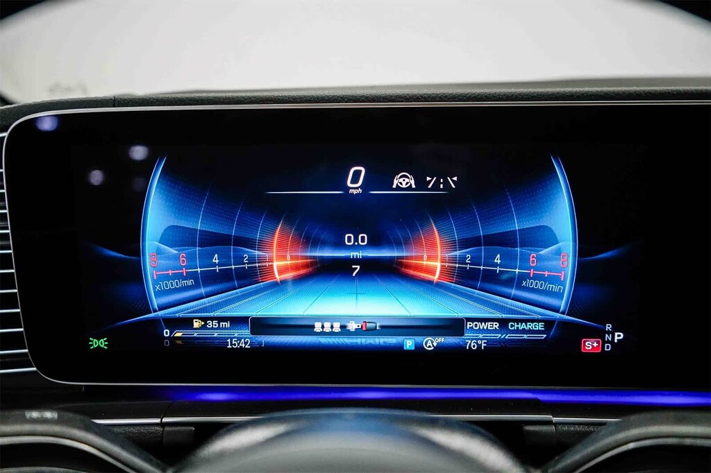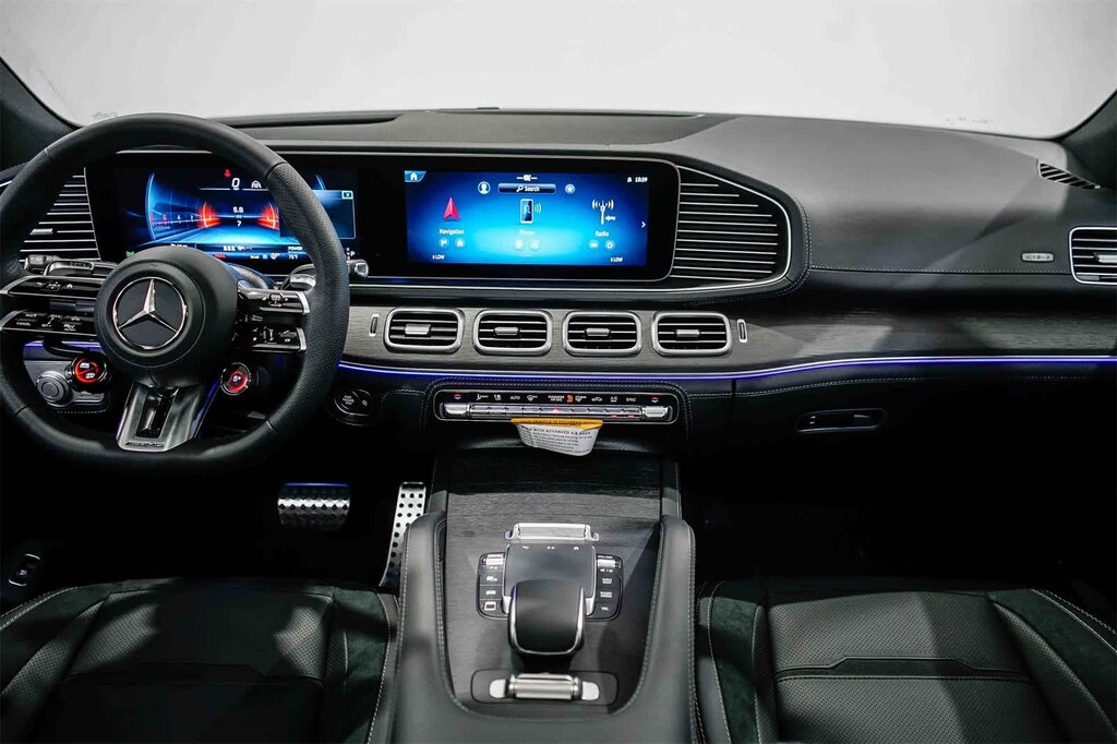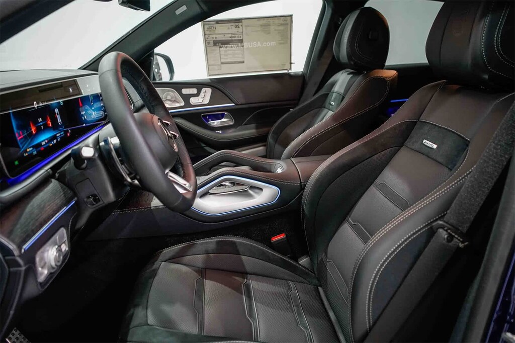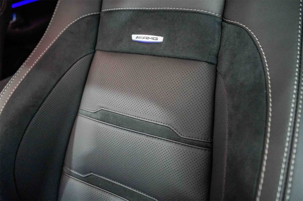 This vehicle includes: 13 Speakers, 21 AMGî Twin 5-Spoke Wheels, 4-Wheel Disc Brakes, ABS brakes, Adaptive suspension, Air Conditioning, Alloy wheels, AM/FM radio: SiriusXM, Anti-whiplash front head restraints, Apple CarPlayî/Android Autoî, Auto High-beam Headlights, Auto tilt-away steering wheel, Auto-dimming door mirrors, Auto-dimming Rear-View mirror, Auto-leveling suspension, Automatic temperature control, Brake assist, Brushed Aluminum Trim, Bumpers: body-color, Child-Seat-Sensing Airbag, Compass, Delay-off headlights, Driver door bin, Driver vanity mirror, Dual front impact airbags, Dual front side impact airbags, Electronic Stability Control, Emergency communication system: eCall Emergency System, Exterior Parking Camera Rear, Four wheel independent suspension, Front anti-roll bar, Front Bucket Seats, Front Center Armrest, Front dual zone A/C, Front reading lights, Fully automatic headlights, Garage door transmitter: HomeLink, Heated and Ventilated Power Front Seats with Driver Memory, Heated door mirrors, Heated front seats, Illuminated entry, Knee airbag, Leather steering wheel, Low tire pressure warning, Memory seat, Nappa Leather Dashboard and Door Panels, Nappa Leather Upholstery, Navigation system: MBUX, Occupant sensing airbag, Outside temperature display, Overhead airbag, Panic alarm, Passenger door bin, Passenger vanity mirror, Power adjustable front head restraints, Power door mirrors, Power driver seat, Power Liftgate, Power moonroof: Panorama, Power passenger seat, Power steering, Power windows, Premium audio system: MBUX, Radio data system, Radio: 12.3 Media Display with Touchscreen, Rain sensing wipers, Rapid Heating Front Seats, Rear anti-roll bar, Rear fog lights, Rear reading lights, Rear seat center armrest, Rear window defroster, Remote keyless entry, Security system, Speed control, Speed-sensing steering, Speed-Sensitive Wipers, Split folding rear seat, Spoiler, Sport steering wheel, Steering wheel memory, Steering wheel mounted audio controls, Tachometer, Telescoping steering wheel, Tilt steering wheel, Traction control, Trip computer, Turn signal indicator mirrors, Ventilated front seats, and Weather band radio