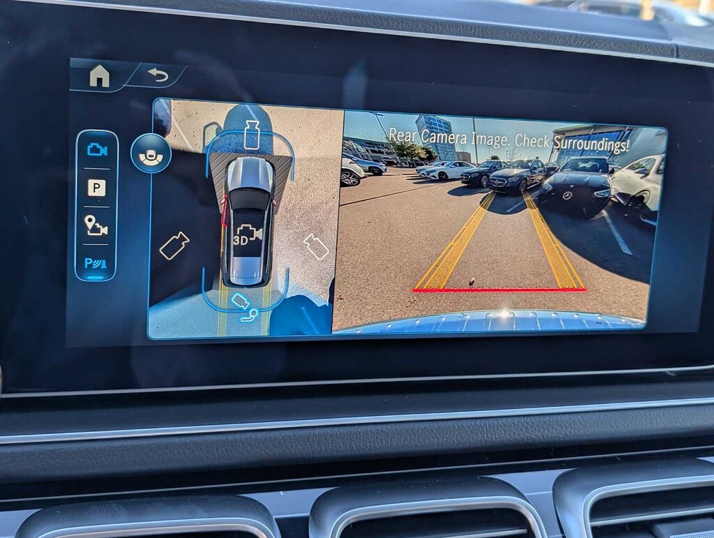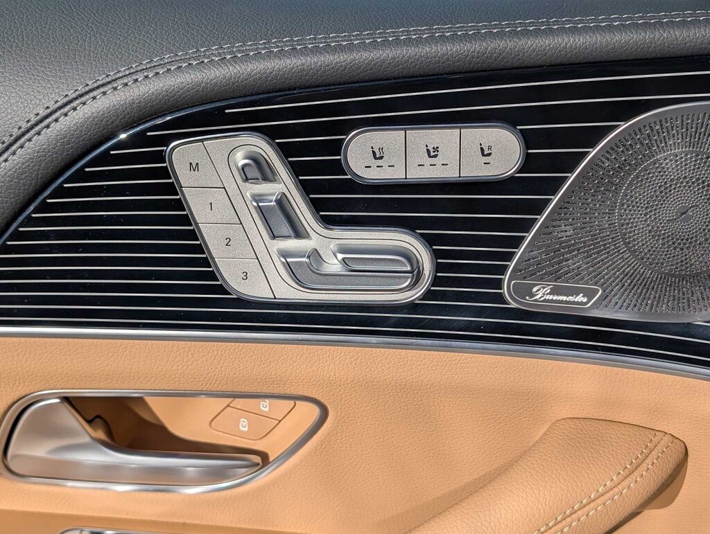 AMG® LINE EXTERIOR AMG® Rear Apron, black diffuser-look insert and chrome trim strip, AMG® Side Skirts in Body Color, Large Front Brake System, larger brake discs at the front axle, AMG® Brushed Stainless Steel Sports Pedals, black rubber studs, AMG® Floor Mats, AMG® Sport 3-Twin-Spoke Steering Wheel, flattened bottom, embossed nappa leather, silver chrome shift paddles, gloss black and silver spokes and touch control panels, Front and Rear Flared Wheel Arches in Body Color, AMG® Bodystyling, AMG® front apron w/air outlets in the wheel arch linings, EXCLUSIVE TRIM PACKAGE Active Multicontour Front Seats w/Massage Feature, Heated Rear Seats, Rapid Heating Front Seats, WHEELS: 22 AMG® MULTI-SPOKE ALLOY W/BLACK ACCENTS Tires: 285/45R22 Front & 325/40R22 Rear, Collapsible Spare Tire, Performance Tires, ROOF SPOILER, TRAILER HITCH increased towing capacity, 5-ZONE CLIMATE CONTROL additional air vents in the headliner, HEATED STEERING WHEEL.