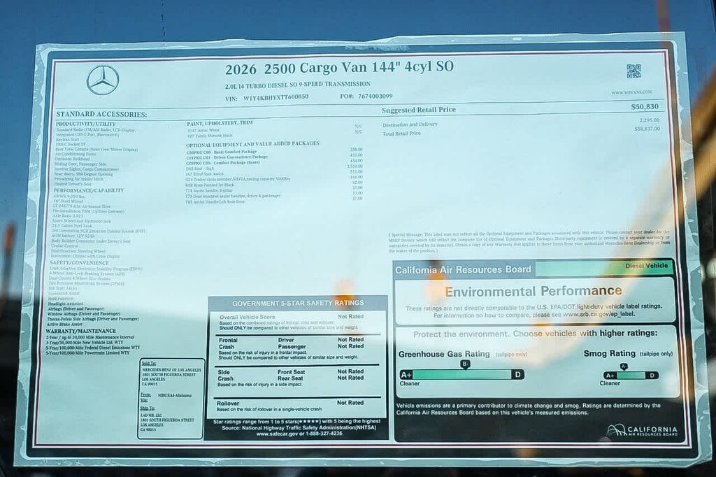 2026 Mercedes-Benz Sprinter 2500 Standard Roof 4-Cyl Diesel