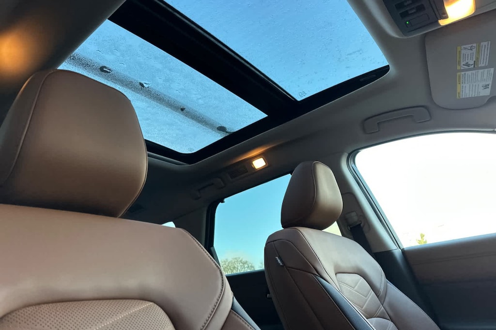 Navigation, Sunroof, 3rd Row Seat, Heated Leather Seats, Panoramic Roof, Captains Chairs, Alloy Wheels, Trailer Hitch, [B93] CROSS BARS. FUEL EFFICIENT 25 MPG Hwy/20 MPG City! Boulder Gray Pearl exterior and Chestnut interior READ MORE!