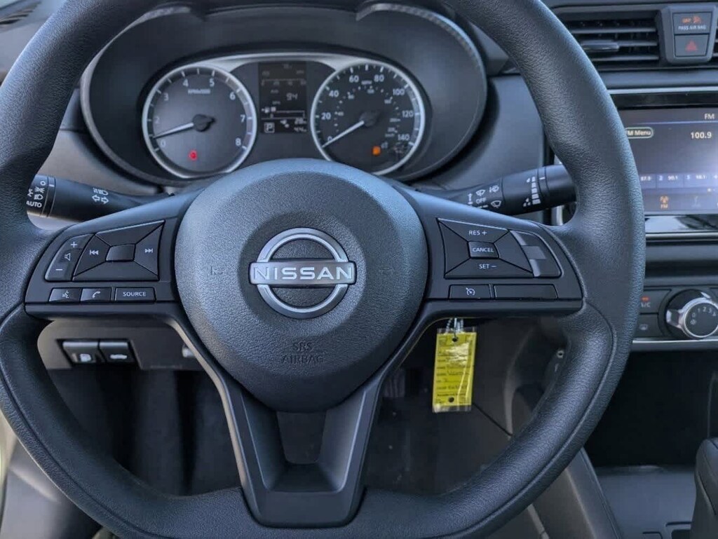 Trunk Package (Shopping Bag Hooks and Trunk Net), 15 Steel Wheels w/Full Wheel Covers, 4 Speakers, ABS brakes, Air Conditioning, AM/FM radio, Auto High-beam Headlights, Brake assist, Bumpers: body-color, Carpeted Floor Mats, Cloth Seat Trim, Delay-off headlights, Driver door bin, Driver vanity mirror, Dual front impact airbags, Dual front side impact airbags, Electronic Stability Control, Front anti-roll bar, Front Bucket Seats, Front reading lights, Front wheel independent suspension, Fully automatic headlights, Illuminated entry, Knee airbag, Low tire pressure warning, Occupant sensing airbag, Outside temperature display, Overhead airbag, Panic alarm, Passenger door bin, Passenger vanity mirror, Power door mirrors, Power steering, Power windows, Radio data system, Radio: AM/FM Audio System, Rear Parking Sensors, Rear side impact airbag, Rear window defroster, Speed control, Splash Guards, Steering wheel mounted audio controls, Tachometer, Telescoping steering wheel, Tilt steering wheel, Traction control, Trip computer, and Variably intermittent wipers. Price includes: $750 - Nissan MY25 Versa Bonus Cash. Exp. 02/02/2026