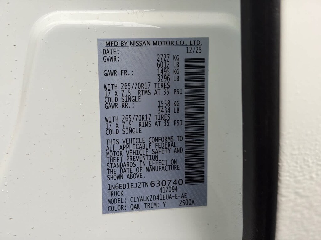PRO Premium Package (Auto-Dimming Mirror, Auto-Tilt & Slide Sunroof w/Manual Shade, Fender Premium Audio System w/10 Speakers, HomeLink UGDO, Leather Seat Trim, Nissan Door-to-Door Navigation, Partial Under-Seat Storage Delete, and Traffic Sign Recognition (TSR)), PRO-X Convenience Package (Heated Steering Wheel, Intelligent Around View Monitor (I-AVM), and Wireless Charging for Personal Devices), 17 Painted Alloy Wheels, 3.692 Axle Ratio, 4-Wheel Disc Brakes, 6 Speakers, ABS brakes, Air Conditioning, Alloy wheels, AM/FM radio: SiriusXM, Anti-whiplash front head restraints, Auto High-beam Headlights, Automatic temperature control, Blind Spot Warning, Brake assist, Bumpers: body-color, Carpeted Floor Mats, Delay-off headlights, Driver door bin, Driver vanity mirror, Dual front impact airbags, Dual front side impact airbags, Electronic Stability Control, Electronic Tailgate Lock, Emergency communication system, Front anti-roll bar, Front Bucket Seats, Front Center Armrest, Front dual zone A/C, Front fog lights, Front reading lights, Front wheel independent suspension, Fully automatic headlights, Heated Front Bucket Seats, Heated steering wheel, Illuminated entry, Knee airbag, Leather steering wheel, Low tire pressure warning, Mud Flaps, Occupant sensing airbag, Off-Road Style Step Rails, Overhead airbag, Overhead console, Panic alarm, Passenger door bin, Passenger vanity mirror, Power door mirrors, Power driver seat, Power passenger seat, Power steering, Power windows, PRO Embroidered Premium Cloth Seat Trim, Radio data system, Radio: SXM/AM/FM/AUX/USB Audio System, Rear anti-roll bar, Rear seat center armrest, Rear side impact airbag, Rear step bumper, Remote keyless entry, Security system, Speed control, Speed-sensing steering, Split folding rear seat, Steering wheel mounted audio controls, Tachometer, Telescoping steering wheel, Tilt steering wheel, Traction control, Trip computer, USB Charging Cable Kit, Variably intermittent wipers, Voltmeter, and Wireless Apple CarPlay/Wireless Android Auto. Price includes: $2500 - Nissan Customer Cash. Exp. 03/31/2026