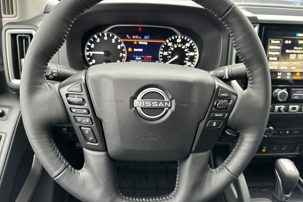 ALL-WEATHER CONTENT PACKAGE Remote Engine Starter, HVAC - Dual-Zone Front Auto A/C, Heated Leather Steering Wheel, Heated Front Seats, DROP-IN BED LINER & BUMPER STEP, TOW PACKAGE tow hitch and tow harness. Nissan SV with Super Black exterior and Charcoal interior features a V6 Cylinder Engine with 310 HP at 6400 RPM*.