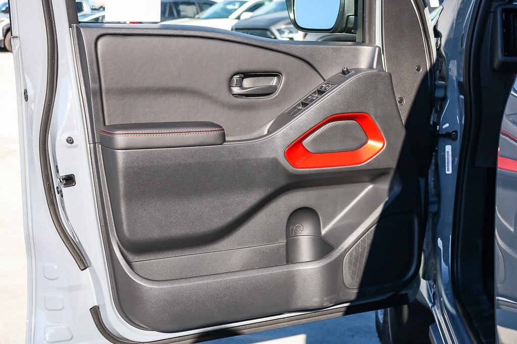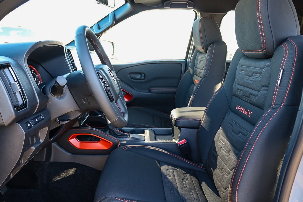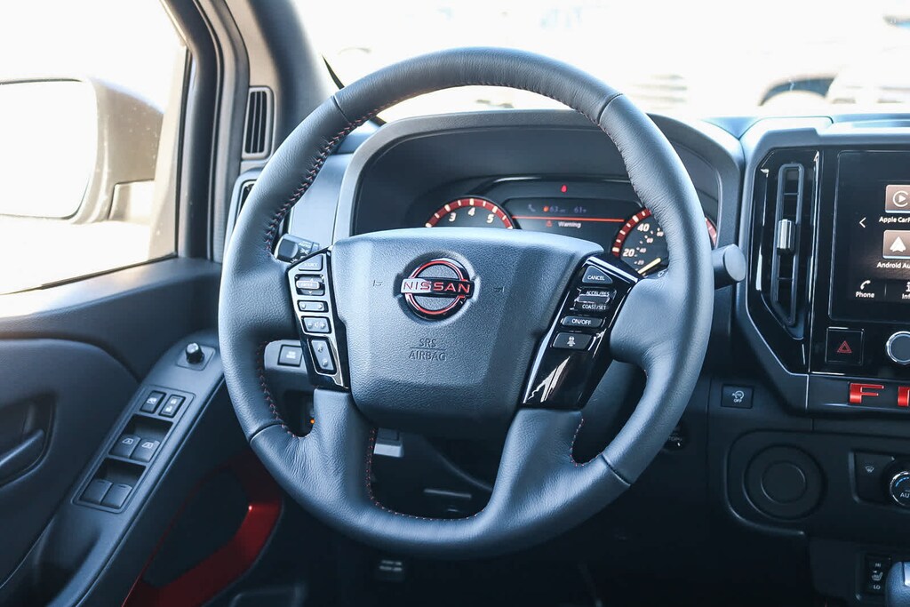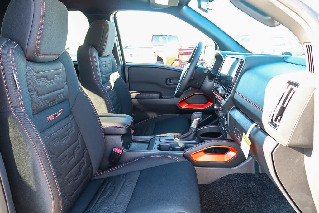 Back-Up Camera, Satellite Radio, iPod/MP3 Input, Onboard Communications System, Aluminum Wheels, Remote Engine Start, Dual Zone A/C, Smart Device Integration, Brake Actuated Limited Slip Differential, WiFi Hotspot, Cross-Traffic Alert, Blind Spot Monitor, Apple CarPlay®. MP3 Player, Keyless Entry, Privacy Glass, Steering Wheel Controls, Child Safety Locks. Nissan PRO-X with Afterburn Orange exterior and Charcoal w/Lava Red St interior features a V6 Cylinder Engine with 310 HP at 6400 RPM*.