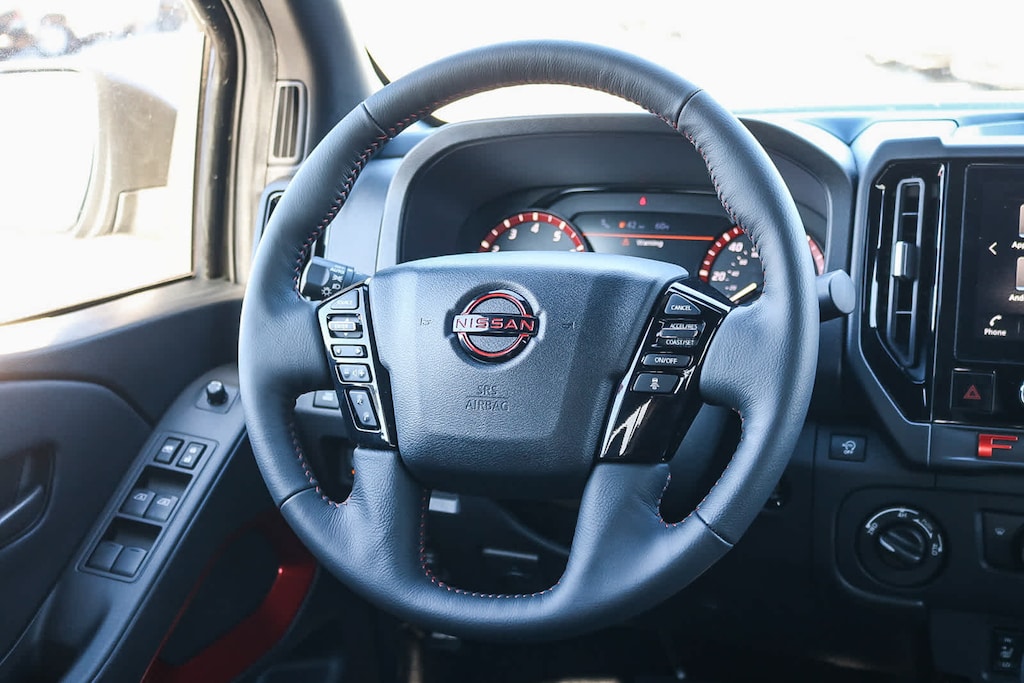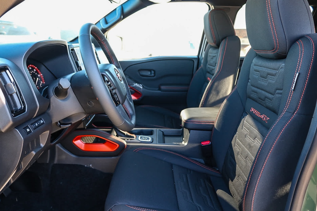 4x4, Heated Driver Seat, Back-Up Camera, Satellite Radio, iPod/MP3 Input, Onboard Communications System, Aluminum Wheels, Remote Engine Start, Dual Zone A/C, Brake Actuated Limited Slip Differential, Smart Device Integration, Cross-Traffic Alert, Apple CarPlay®, WiFi Hotspot, Blind Spot Monitor. MP3 Player, Privacy Glass, Keyless Entry, Child Safety Locks, Steering Wheel Controls. Nissan PRO-4X with Boulder Gray Pearl exterior and Charcoal w/Lava Red St interior features a V6 Cylinder Engine with 310 HP at 6400 RPM*.