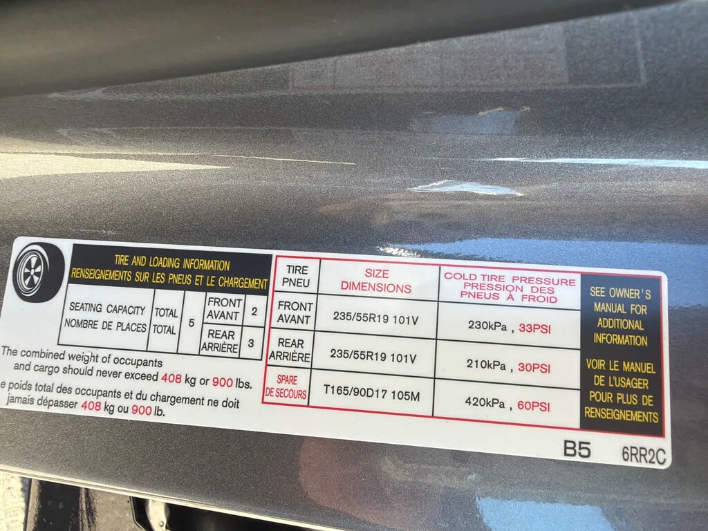 - Front tires: 235/55VR19.0