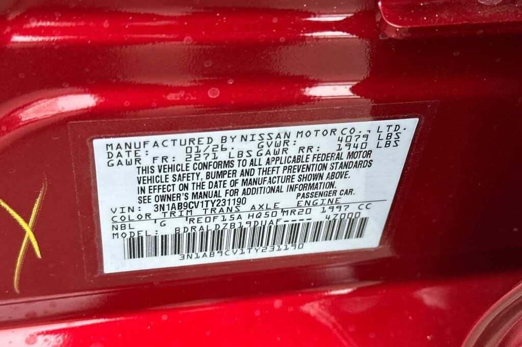 SV CONVENIENCE PACKAGE Wireless Charging for Personal Devices, 6 Speakers, Heated Front Seats, Heated Exterior Mirrors, LED turn signals, I-Key w/Approach Unlock All + Walk Away Lock, Ambient Lighting, Auto Diming Inside Mirror, Heated Steering Wheel, Synthetic Leather Steering Wheel, Visor DR/AS w/LED light, Soft Knee Pad. Nissan SV with Scarlet Ember Tintcoat exterior and Charcoal interior features a 4 Cylinder Engine with 149 HP at 6400 RPM*.