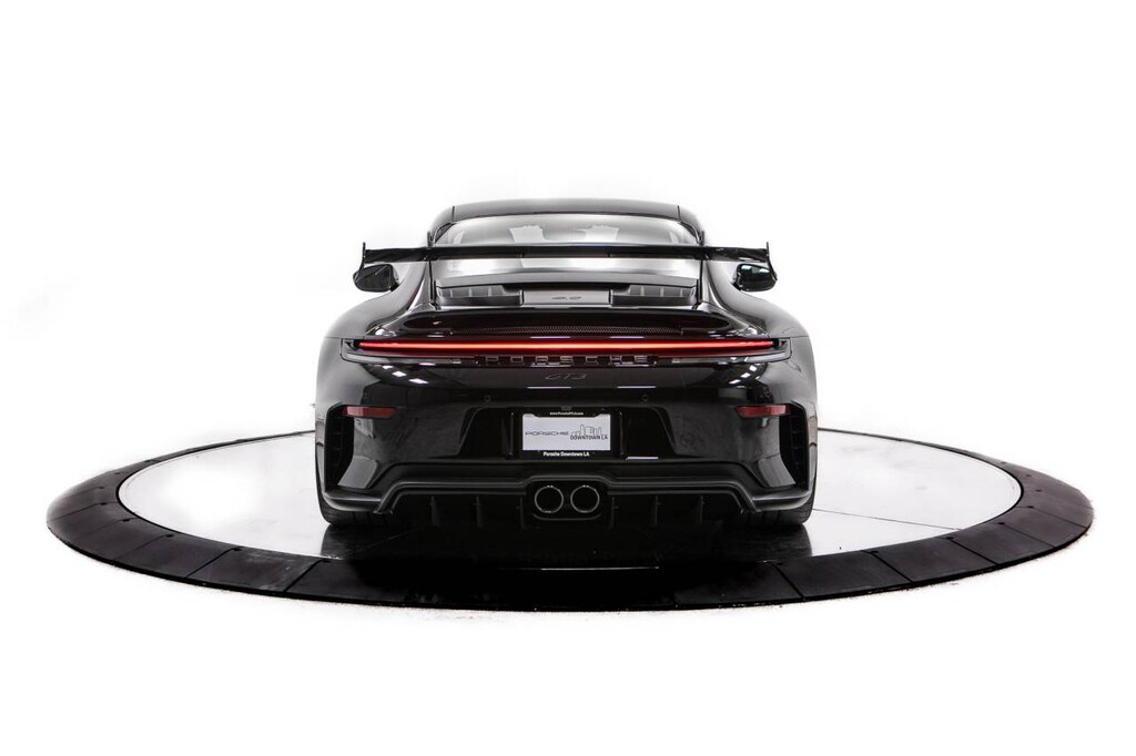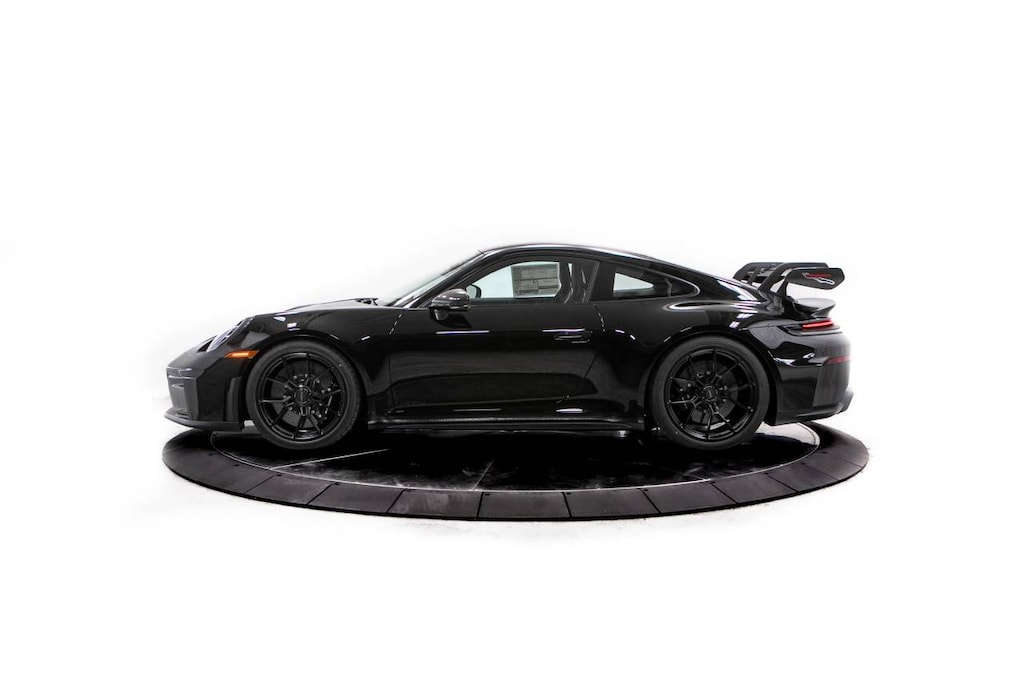 Black 2026 Porsche 911 GT3 RWD 7-Speed Porsche Doppelkupplung (PDK) 4.0L H6 DOHC 24V LEV3-LEV160 502hp 4-Way Sport Seats Plus, 4-Wheel Disc Brakes, 8 Speakers, ABS brakes, Adaptive suspension, Air Conditioning, Alloy wheels, Ambient Lighting, Automatic temperature control, BORN IN FLACHT Under Door Puddle Light Projectors, BOSE Surround Sound System, Brake assist, Bumpers: body-color, Center Console Lid in Race-Tex with Porsche Crest, Chrono Package, Chrono Stopwatch Dial in Guards Red, Delay-off headlights, Deletion of SiriusXM Antenna, Driver door bin, Driver vanity mirror, Dual front impact airbags, Dual front side impact airbags, Electronic Stability Control, Emergency communication system, Exclusive Design Fuel Cap, Extended Range 22.1 Gallon Fuel Tank, Exterior Parking Camera Rear, Folding Lightweight Bucket Seats, Four wheel independent suspension, Front Air Intake Grille with Weissach Package Logo, Front anti-roll bar, Front Axle Lift System, Front Bucket Seats, Front Center Armrest, Front dual zone A/C, Front reading lights, Fully automatic headlights, Garage door transmitter: HomeLink, GT Sport Steering Wheel in Leather, HD-Matrix Design LED Headlights in Black, Heated door mirrors, Heated front seats, Illuminated Bespoke Matte Carbon Fiber Door Sill Guards, Illuminated entry, Ionizer, Leather/Race-Tex Seat Trim, Low tire pressure warning, Navigation system: Porsche Communication Management (PCM), Occupant sensing airbag, Outside temperature display, Overhead airbag, Overhead console, ParkAssist Rear, Passenger door bin, Passenger vanity mirror, Porsche Communication Management, Power door mirrors, Power driver seat, Power passenger seat, Power steering, Power windows, Preparation For Front and Rear Porsche Dashcam, Radio data system, Rear anti-roll bar, Rear fog lights, Rear window defroster, Remote keyless entry, Seat Belts in Guards Red, Security system, Sound Package Plus, Speed control, Speed-sensing steering, Spoiler, Sport steering wheel, Steering wheel mounted audio controls, Storage Net in Passenger Footwell, Tachometer, Telescoping steering wheel, Tilt steering wheel, Traction control, Trip computer, Variably intermittent wipers, Weissach Package, Weissach Package Logo on Rear Wing Endplates, Wheels Painted in Satin Black, Wheels: 20 Front/21 Rear 911 GT3.