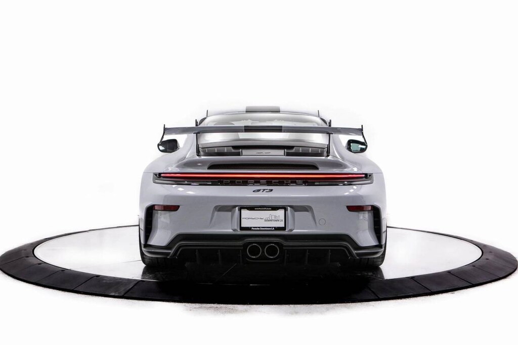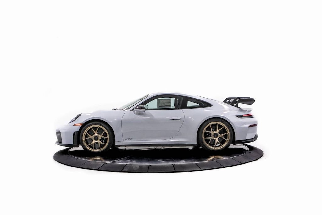 Gray Metallic 2026 Porsche 911 GT3 RWD 4.0L H6 DOHC 24V LEV3-LEV160 502hp 4-Way Sport Seats Plus, 4-Wheel Disc Brakes, 8 Speakers, ABS brakes, Adaptive suspension, Air Conditioning, Alloy wheels, Ambient Lighting, Automatic temperature control, BORN IN FLACHT Under Door Puddle Light Projectors, BOSE Surround Sound System, Brake assist, Bumpers: body-color, Center Console Lid in Race-Tex with Porsche Crest, Chrono Package, Delay-off headlights, Deletion of SiriusXM Antenna, Driver door bin, Driver vanity mirror, Dual front impact airbags, Dual front side impact airbags, Electronic Stability Control, Emergency communication system, Exclusive Design Fuel Cap, Exclusive Design Taillights, Extended Range 22.1 Gallon Fuel Tank, Exterior Parking Camera Rear, Folding Lightweight Bucket Seats, Four wheel independent suspension, Front anti-roll bar, Front Axle Lift System, Front Bucket Seats, Front Center Armrest, Front dual zone A/C, Front reading lights, Fully automatic headlights, Garage door transmitter: HomeLink, GT Sport Steering Wheel in Leather, Heated door mirrors, Heated front seats, Illuminated entry, Ionizer, Leather/Race-Tex Seat Trim, Low tire pressure warning, Navigation system: Porsche Communication Management (PCM), Occupant sensing airbag, Outside temperature display, Overhead airbag, Overhead console, Passenger door bin, Passenger vanity mirror, Porsche Communication Management, Power door mirrors, Power driver seat, Power passenger seat, Power steering, Power windows, Radio data system, Rear anti-roll bar, Rear fog lights, Rear window defroster, Remote keyless entry, Security system, Smoking Package, Sound Package Plus, Speed control, Speed-sensing steering, Spoiler, Sport Chrono Stopwatch in White, Sport steering wheel, Steering wheel mounted audio controls, Tachometer, Telescoping steering wheel, Tilt steering wheel, Traction control, Trip computer, Variably intermittent wipers, Weissach Package, Wheels: 20 Front/21 Rear 911 GT3, Wheels: 20 Front/21 Rear 911 GT3 Forged Magnesium.