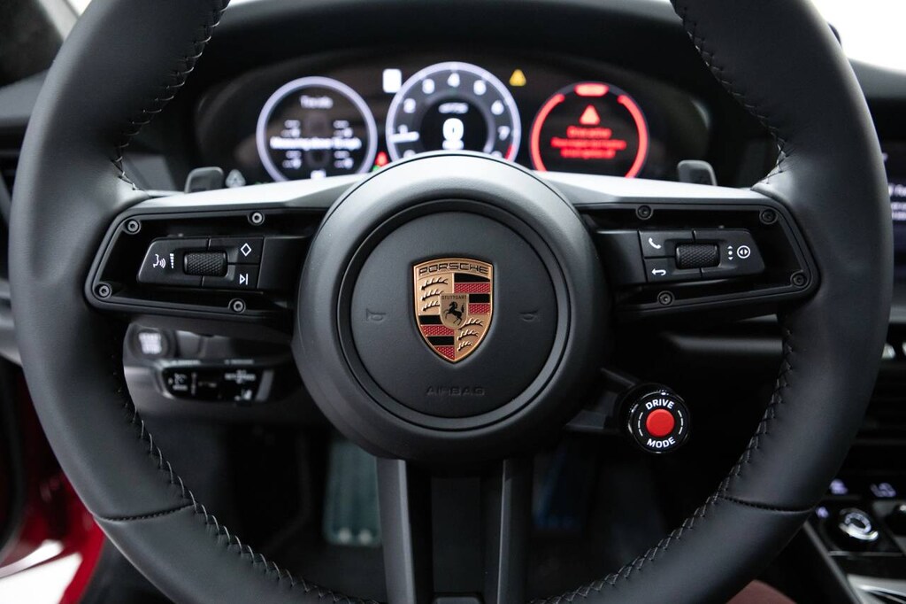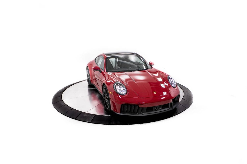 Carmine Red 2026 Porsche 911 Carrera 4 GTS AWD 8-Speed Porsche Doppelkupplung (PDK) 3.6L H6 Hybrid Turbocharged DOHC 24V LEV3-ULEV70 3.6L H6 Hybrid Turbocharged DOHC 24V LEV3-ULEV70, AWD, 14-Way Power Sport Seats with Memory Package, 4-Way Sport Seats Plus, 4-Wheel Disc Brakes, 8 Speakers, ABS brakes, Adaptive Cruise Control, Adaptive suspension, Air Conditioning, Alloy wheels, Auto High-beam Headlights, Auto-dimming door mirrors, Auto-dimming Rear-View mirror, Automatic temperature control, BOSE Surround Sound System, Brake assist, Bumpers: body-color, Delay-off headlights, Driver door bin, Driver vanity mirror, Dual front impact airbags, Dual front side impact airbags, Electric Slide/Tilt Glass Sunroof, Electronic Stability Control, Emergency communication system, Exclusive Design Fuel Cap, Exclusive Design Taillights, Exterior Parking Camera Rear, Four wheel independent suspension, Front anti-roll bar, Front Axle Lift System, Front Bucket Seats, Front Center Armrest, Front dual zone A/C, Front reading lights, Front Ventilated Seats, Fully automatic headlights, Garage door transmitter: HomeLink, HD-Matrix Design LED Headlights in Black, Heated door mirrors, Heated front seats, Heated steering wheel, Illuminated Door Sill Guards in Black Brushed Aluminum, Illuminated entry, Ionizer, Lane Change Assist (LCA), Leather Seat Trim with Leather Interior, Low tire pressure warning, Navigation system: Porsche Communication Management (PCM), Occupant sensing airbag, Outside temperature display, Overhead airbag, Overhead console, Passenger door bin, Passenger vanity mirror, Porsche Communication Management, Porsche Crest on Front Headrests, Power door mirrors, Power driver seat, Power passenger seat, Power steering, Power Steering Plus, Power windows, Premium Package with Remote ParkAssist, Preparation For Front and Rear Porsche Dashcam, Radio data system, Rain sensing wipers, Rear anti-roll bar, Rear fog lights, Rear Seats, Rear window defroster, Remote keyless entry, Remote ParkAssist, Security system, Sound Package Plus, Speed control, Spoiler, Sport steering wheel, Sport Tailpipes in Titanium, SportDesign Side Skirts in Matte Black, Steering wheel mounted audio controls, Storage Net in Passenger Footwell, Tachometer, Telescoping steering wheel, Tilt steering wheel, Traction control, Trip computer, Under Door Puddle Light Projectors, Variably intermittent wipers, Wheels: 20 Front/21 Rear Carrera GTS, 3.6L H6 Hybrid Turbocharged DOHC 24V LEV3-ULEV70, AWD.