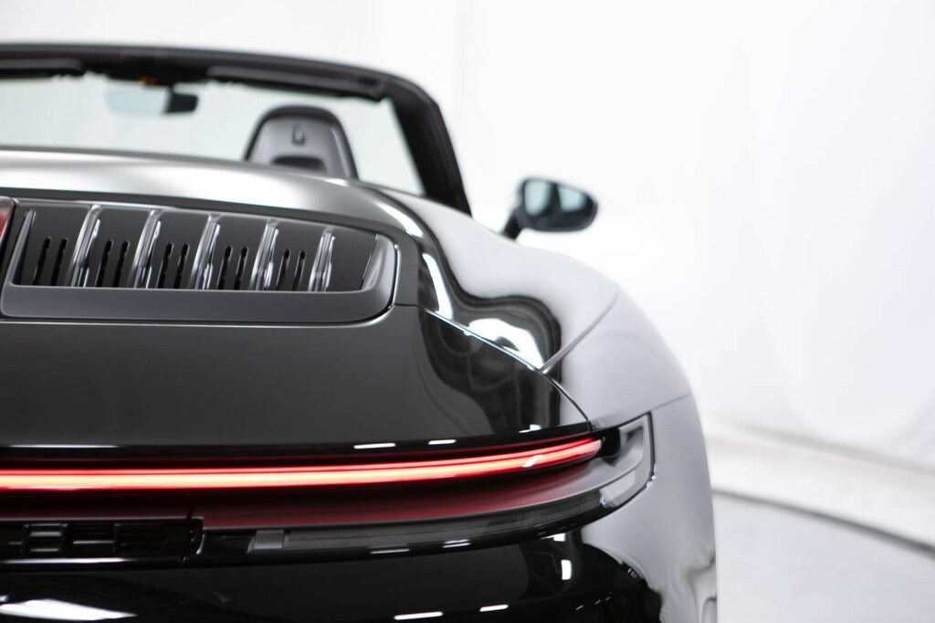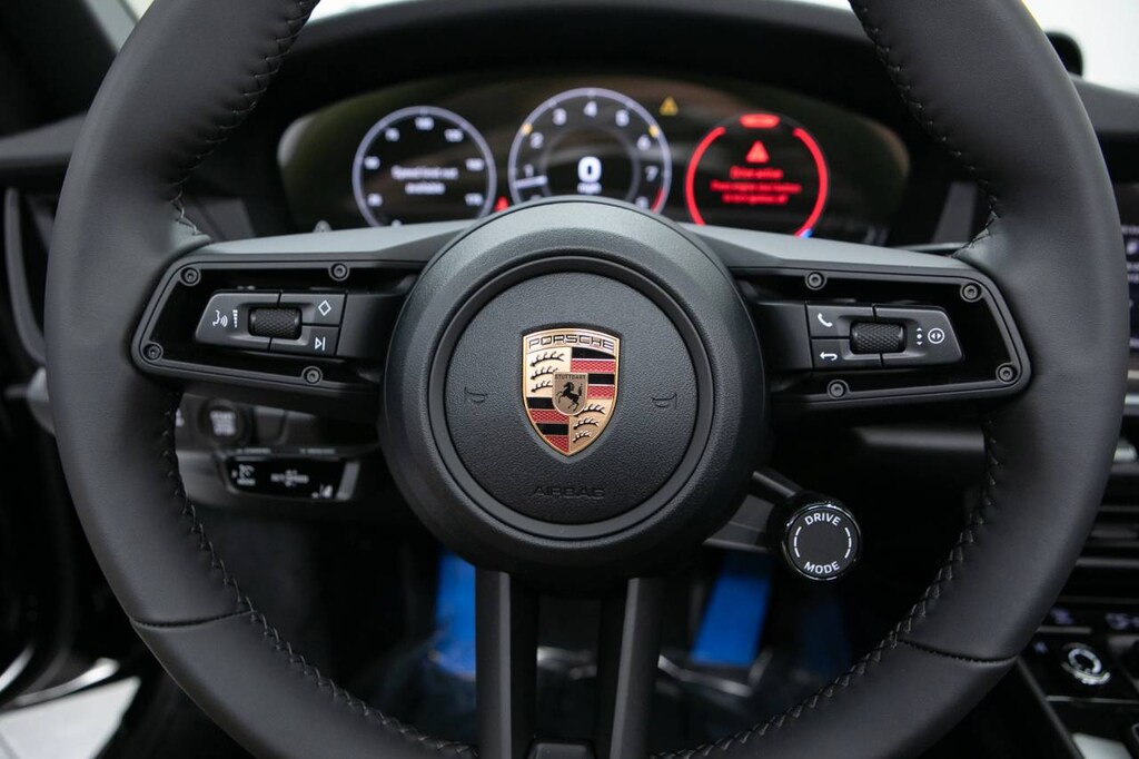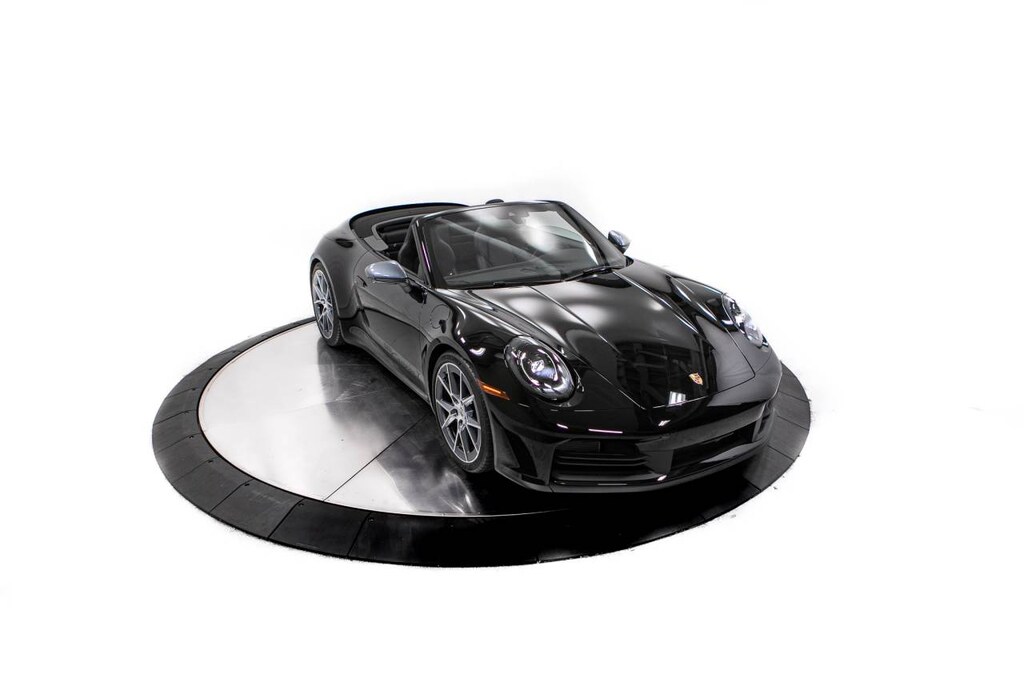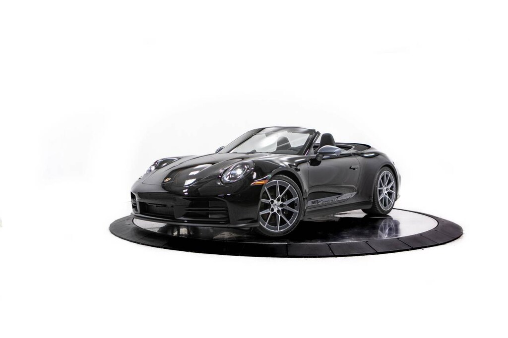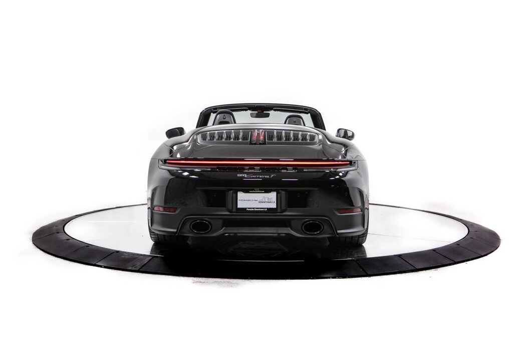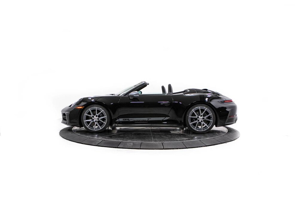 Black 2026 Porsche 911 Carrera T RWD 6-Speed Manual 3.0L H6 Turbocharged DOHC 24V LEV3-ULEV70 388hp 18-Way Adaptive Sport Seats Plus with Memory Package, 4-Way Sport Seats Plus, 4-Wheel Disc Brakes, 8 Speakers, 911 Carrera T Puddle Light Projectors, 911 Carrera T Side Logos in Vanadium Grey, ABS brakes, Adaptive suspension, Air Conditioning, Alloy wheels, Auto-dimming door mirrors, Auto-dimming Rear-View mirror, Automatic temperature control, BOSE Surround Sound System, Brake assist, Bumpers: body-color, Convertible roof lining, Convertible roof wind blocker, Delay-off headlights, Driver door bin, Driver vanity mirror, Dual front impact airbags, Dual front side impact airbags, Electronic Stability Control, Emergency communication system, Exclusive Design Fuel Cap, Extended Range 22.1 Gallon Fuel Tank, Exterior Parking Camera Rear, Four wheel independent suspension, Front anti-roll bar, Front Bucket Seats, Front Center Armrest, Front dual zone A/C, Front reading lights, Front Ventilated Seats, Fully automatic headlights, Garage door transmitter: HomeLink, Glass rear window, Heated door mirrors, Heated front seats, Heated steering wheel, Illuminated entry, Integrated roll-over protection, Lane Change Assist (LCA), Leather steering wheel, Leather/Sport-Tex Plaid Seat Trim, Low tire pressure warning, Navigation system: Porsche Communication Management (PCM), Occupant sensing airbag, Outside temperature display, Overhead airbag, Overhead console, Passenger door bin, Passenger vanity mirror, Porsche Communication Management, Power convertible roof, Power door mirrors, Power driver seat, Power passenger seat, Power steering, Power Steering Plus, Power windows, Preparation For Front Porsche Dashcam, Radio data system, Rain sensing wipers, Rear anti-roll bar, Rear fog lights, Rear window defroster, Remote keyless entry, Security system, Sound Package Plus, Speed control, Spoiler, Sport steering wheel, Steering wheel mounted audio controls, Surround View, Tachometer, Telescoping steering wheel, Tilt steering wheel, Traction control, Trip computer, Variably intermittent wipers, Wheels: 20 Front/21 Rear Carrera S.