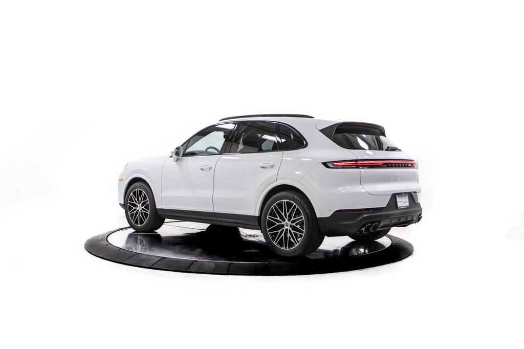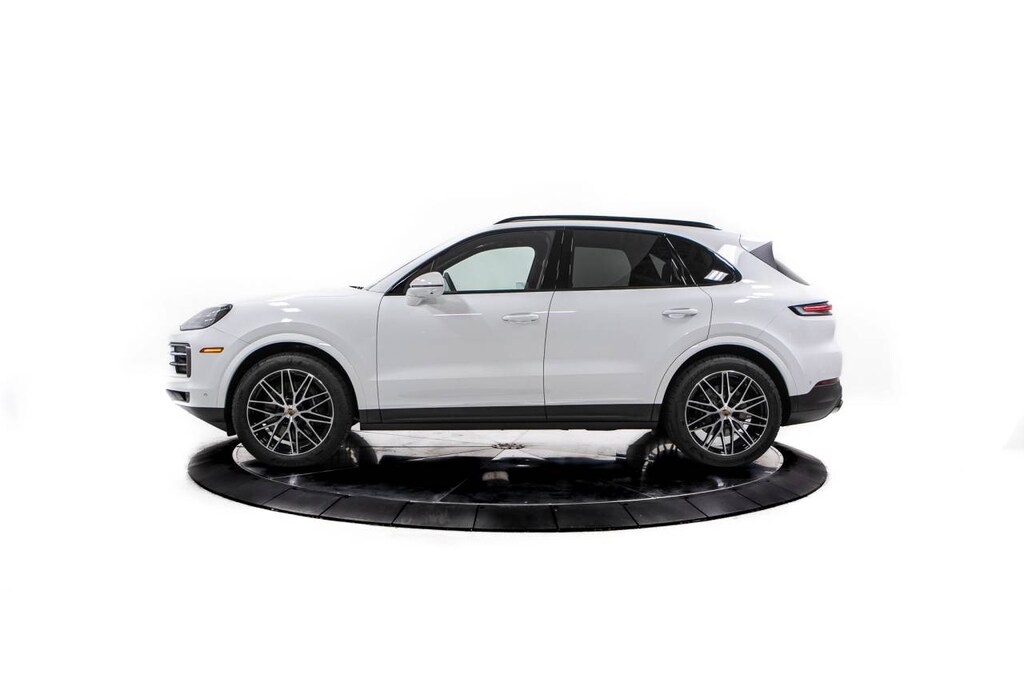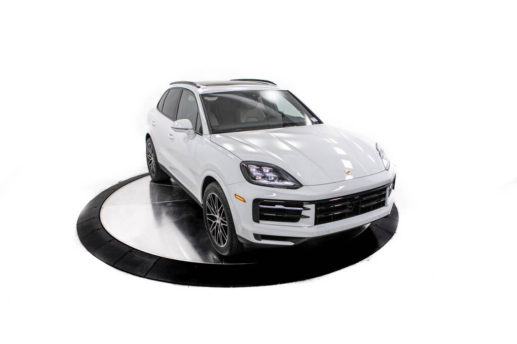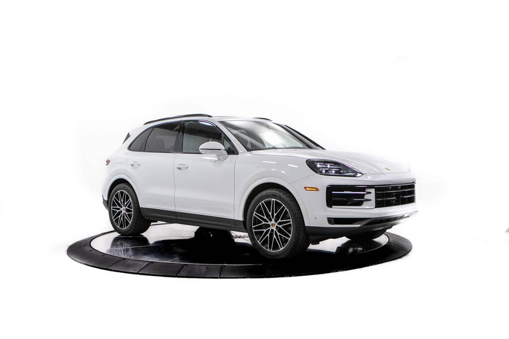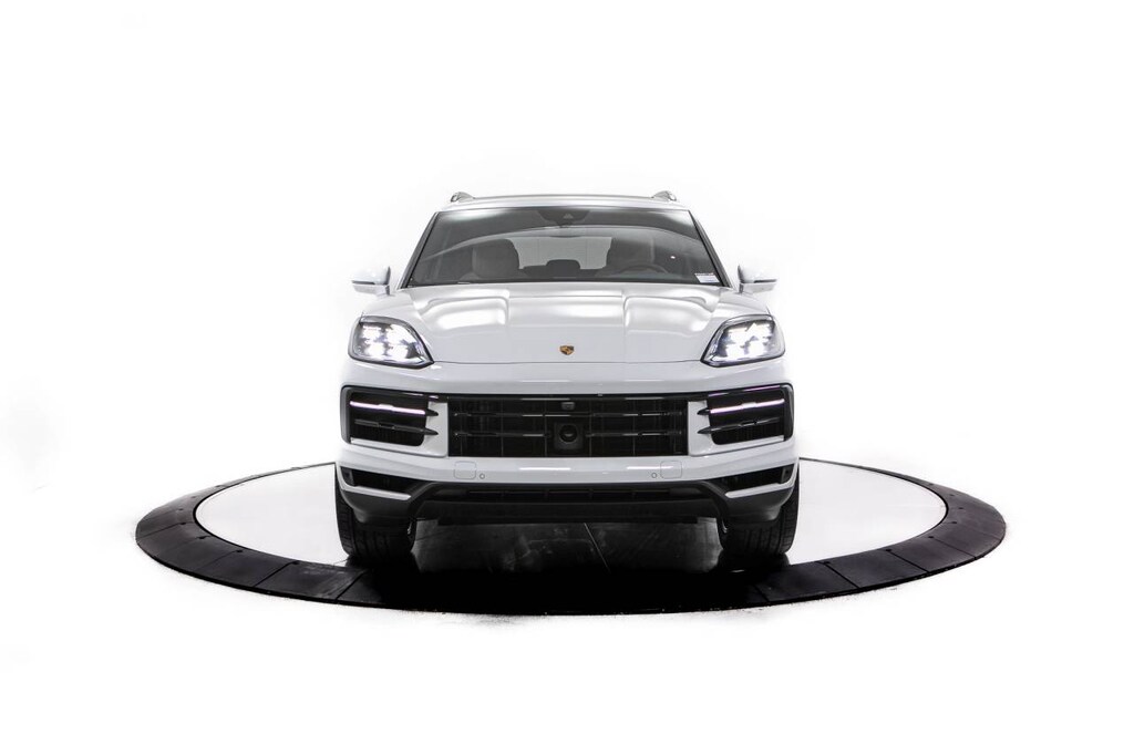 White 2026 Porsche Cayenne AWD 8-Speed Automatic with Tiptronic 3.0L V6 Black Leather, 10 Speakers, 14-Way Power Seats with Comfort Memory, 4-Wheel Disc Brakes, 4-Zone Climate Control, 8-Way Power Seats, ABS brakes, Adaptive Cruise Control with Lane Keep Assist (LKA), Adaptive suspension, Air Conditioning, Air Quality System, Alloy wheels, AM/FM radio: SiriusXM w/360L, Apple CarPlay & Android Auto, Artificial Leather Seat Trim, Audio memory, Auto-dimming door mirrors, Auto-dimming Rear-View mirror, Automatic temperature control, BOSE Surround Sound System, Brake assist, Bumpers: body-color, Compass, Delay-off headlights, Driver door bin, Driver vanity mirror, Dual front impact airbags, Dual front side impact airbags, Electronic Stability Control, Exclusive Design Fuel Cap, Exterior Mirrors in Exterior Color, Exterior Parking Camera Rear, Four wheel independent suspension, Front anti-roll bar, Front Bucket Seats, Front Center Armrest, Front dual zone A/C, Front reading lights, Front Ventilated Seats, Fully automatic headlights, Garage door transmitter: HomeLink, HD-Matrix Design LED Headlights, Heated door mirrors, Heated front seats, Heated GT Sport Steering Wheel in Leather, Heated steering wheel, HVAC memory, Illuminated entry, Knee airbag, Leather steering wheel, Low tire pressure warning, Memory seat, Navigation System, Occupant sensing airbag, Outside temperature display, Overhead airbag, Overhead console, Panic alarm, Panoramic Roof System, Passenger door bin, Passenger vanity mirror, Porsche Communication Management, Porsche Crest on Front Headrests, Porsche Logo in High Gloss Black with Model Designation Delete, Power door mirrors, Power driver seat, Power Liftgate, Power passenger seat, Power steering, Power windows, Premium Package Plus, Preparation For Porsche Front and Rear Dashcam, Radio data system, Rain sensing wipers, Rear anti-roll bar, Rear fog lights, Rear Heated Seats, Rear reading lights, Rear seat center armrest, Rear side impact airbag, Rear window defroster, Rear window wiper, Remote keyless entry, Roof Rails in Black Aluminum Finish, Security system, Speed control, Speed-sensing steering, Split folding rear seat, Spoiler, Sport Tailpipes in Dark Bronze, Steering wheel mounted audio controls, Tachometer, Telescoping steering wheel, Tilt steering wheel, Traction control, Trip computer, Turn signal indicator mirrors, Under Door Puddle Light Projectors, Variably intermittent wipers, Voltmeter, Wheels: 20 Cayenne Design, Wheels: 21 RS Spyder Design, Window Trim in High Gloss Black, Black Leather.