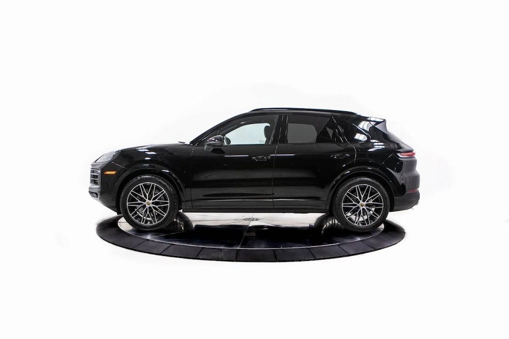 Black 2026 Porsche Cayenne AWD 8-Speed Automatic with Tiptronic 3.0L V6 Black Leather, 10 Speakers, 14-Way Power Seats with Comfort Memory, 4-Wheel Disc Brakes, 4-Zone Climate Control, 8-Way Power Seats, ABS brakes, Adaptive Cruise Control with Lane Keep Assist (LKA), Adaptive suspension, Air Conditioning, Alloy wheels, AM/FM radio: SiriusXM w/360L, Apple CarPlay & Android Auto, Artificial Leather Seat Trim, Audio memory, Auto-dimming door mirrors, Auto-dimming Rear-View mirror, Automatic temperature control, BOSE Surround Sound System, Brake assist, Bumpers: body-color, Compass, Delay-off headlights, Driver door bin, Driver vanity mirror, Dual front impact airbags, Dual front side impact airbags, Electronic Stability Control, Exterior Parking Camera Rear, Four wheel independent suspension, Front anti-roll bar, Front Bucket Seats, Front Center Armrest, Front dual zone A/C, Front reading lights, Front Ventilated Seats, Fully automatic headlights, Garage door transmitter: HomeLink, HD-Matrix Design LED Headlights, Heated door mirrors, Heated front seats, Heated steering wheel, HVAC memory, Illuminated entry, Knee airbag, Leather steering wheel, Low tire pressure warning, Memory seat, Navigation System, Occupant sensing airbag, Outside temperature display, Overhead airbag, Overhead console, Panic alarm, Panoramic Roof System, Passenger door bin, Passenger vanity mirror, Porsche Communication Management, Power door mirrors, Power driver seat, Power Liftgate, Power passenger seat, Power steering, Power windows, Premium Package Plus, Radio data system, Rain sensing wipers, Rear anti-roll bar, Rear fog lights, Rear Heated Seats, Rear reading lights, Rear seat center armrest, Rear side impact airbag, Rear window defroster, Rear window wiper, Remote keyless entry, Security system, Speed control, Speed-sensing steering, Split folding rear seat, Spoiler, Steering wheel mounted audio controls, Tachometer, Telescoping steering wheel, Tilt steering wheel, Traction control, Trip computer, Turn signal indicator mirrors, Variably intermittent wipers, Voltmeter, Wheels: 20 Cayenne Design, Wheels: 21 RS Spyder Design, Window Trim in High Gloss Black, Black Leather.