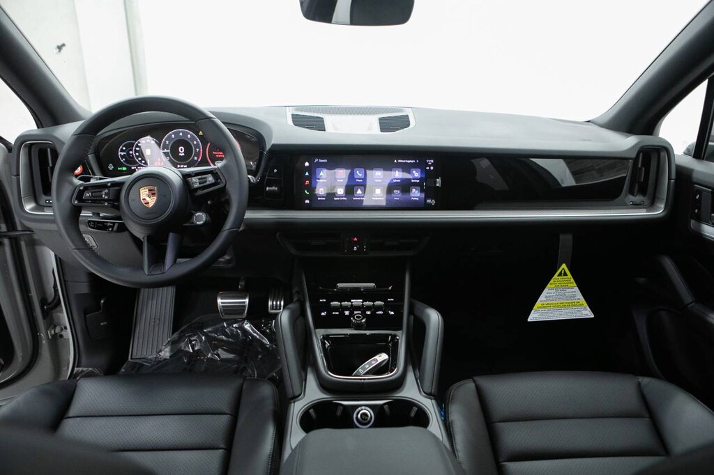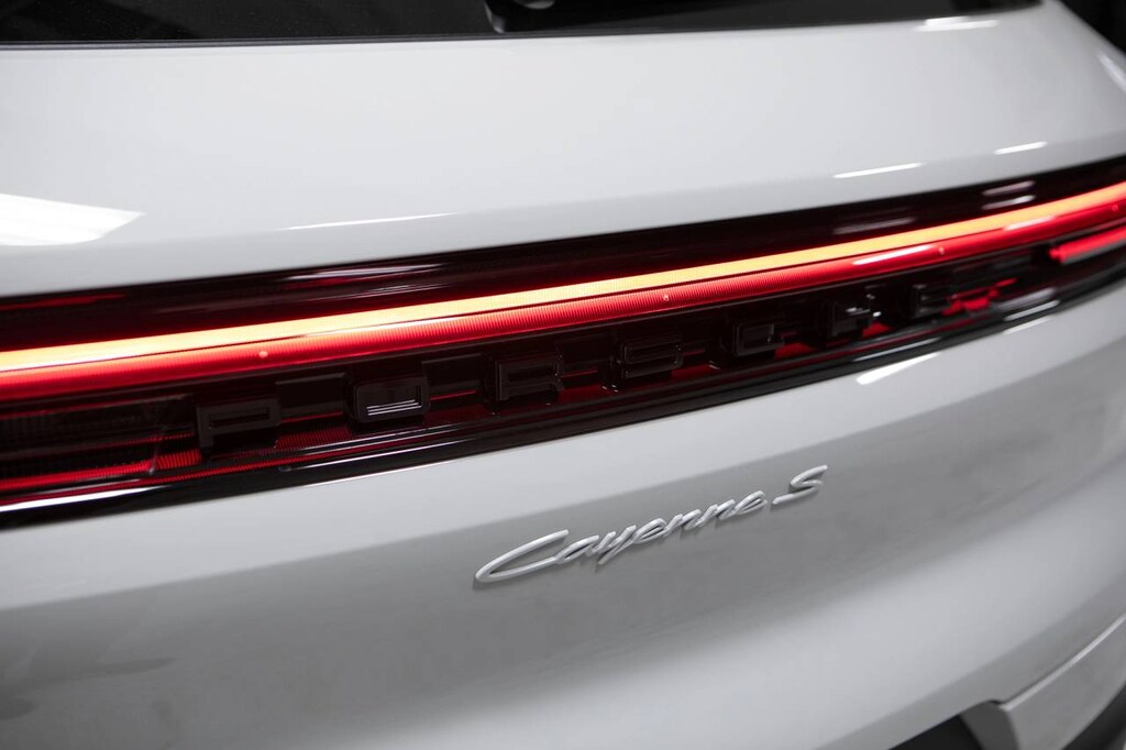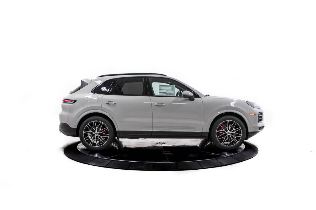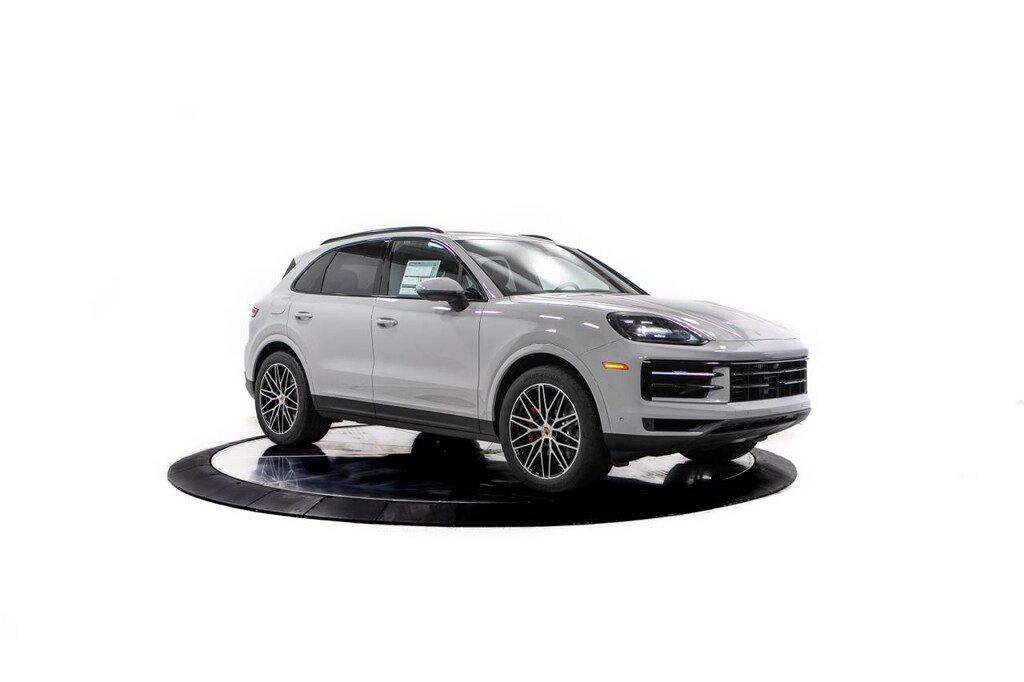 Chalk 2026 Porsche Cayenne S AWD 8-Speed Automatic with Tiptronic V8 Black Leather, 10 Speakers, 4-Wheel Disc Brakes, 8-Way Power Seats, ABS brakes, Adaptive Cruise Control with Lane Keep Assist (LKA), Adaptive suspension, Air Conditioning, Air Quality System, Alloy wheels, AM/FM radio: SiriusXM w/360L, Apple CarPlay & Android Auto, Artificial Leather Seat Trim, Audio memory, Auto-dimming door mirrors, Auto-dimming Rear-View mirror, Automatic temperature control, BOSE Surround Sound System, Brake assist, Bumpers: body-color, Compass, Delay-off headlights, Driver door bin, Driver vanity mirror, Dual front impact airbags, Dual front side impact airbags, Electronic Stability Control, Exterior Parking Camera Rear, Four wheel independent suspension, Front anti-roll bar, Front Bucket Seats, Front Center Armrest, Front dual zone A/C, Front reading lights, Fully automatic headlights, Garage door transmitter: HomeLink, Heated door mirrors, Heated front seats, Heated GT Sport Steering Wheel in Leather, Heated steering wheel, HVAC memory, Illuminated entry, Knee airbag, Leather steering wheel, Low tire pressure warning, Memory seat, Navigation System, Occupant sensing airbag, Outside temperature display, Overhead airbag, Overhead console, Panic alarm, Panoramic Roof System, Passenger door bin, Passenger vanity mirror, Porsche Communication Management, Porsche Crest on Front Headrests, Porsche Logo on Rear in High Gloss Black, Power door mirrors, Power driver seat, Power Liftgate, Power passenger seat, Power steering, Power windows, Premium Package, Preparation For Porsche Front and Rear Dashcam, Radio data system, Rain sensing wipers, Rear anti-roll bar, Rear fog lights, Rear Heated Seats, Rear reading lights, Rear seat center armrest, Rear side impact airbag, Rear window defroster, Rear window wiper, Remote keyless entry, Roof Rails in Black Aluminum Finish, Security system, Speed control, Speed-sensing steering, Split folding rear seat, Spoiler, Sport Tailpipes in Dark Bronze, Steering wheel mounted audio controls, Tachometer, Telescoping steering wheel, Tilt steering wheel, Traction control, Trip computer, Turn signal indicator mirrors, Under Door Puddle Light Projectors, Variably intermittent wipers, Voltmeter, Wheels: 20 Cayenne S, Wheels: 21 RS Spyder Design, Window Trim in High Gloss Black, Black Leather.