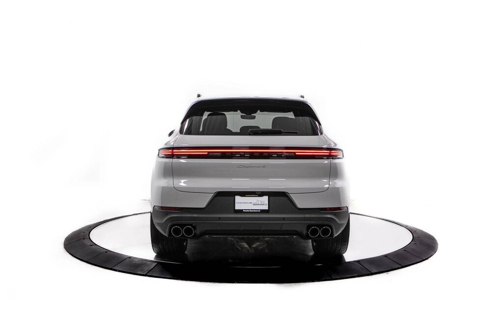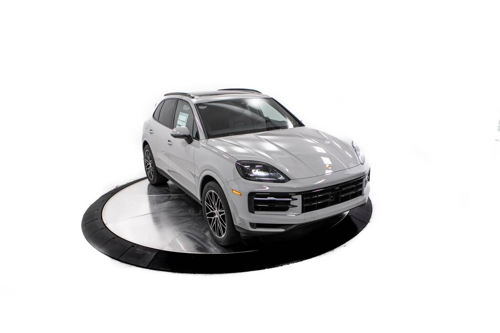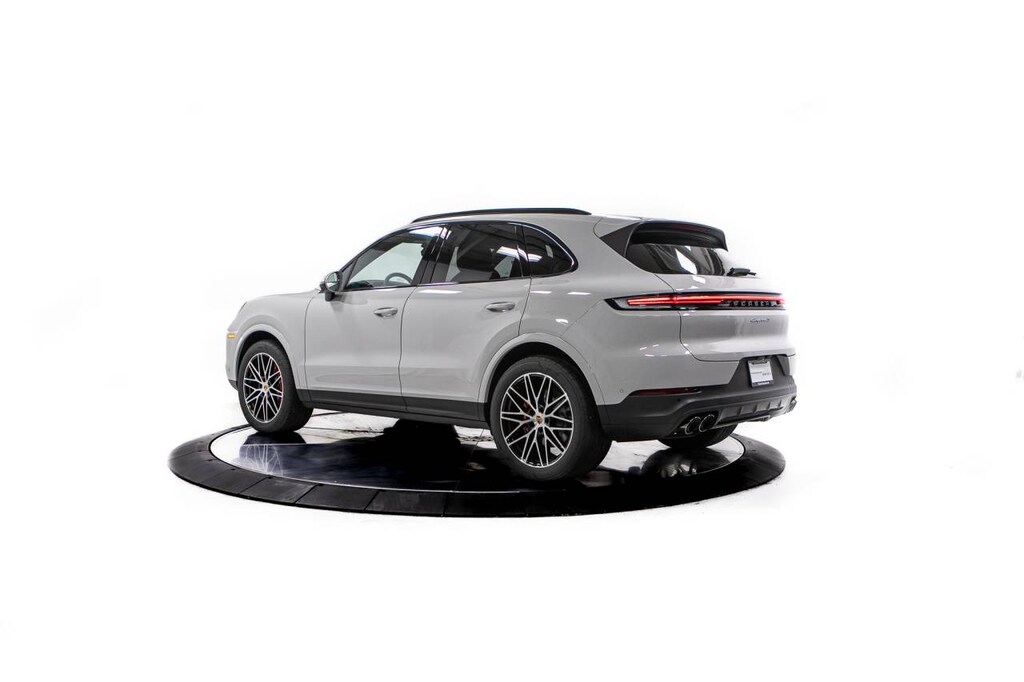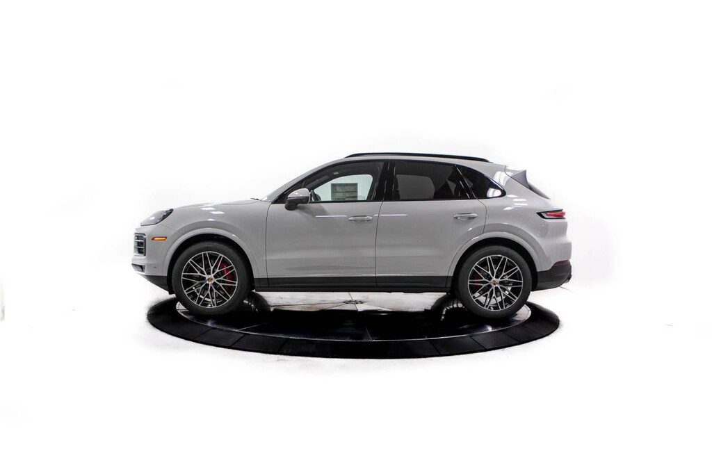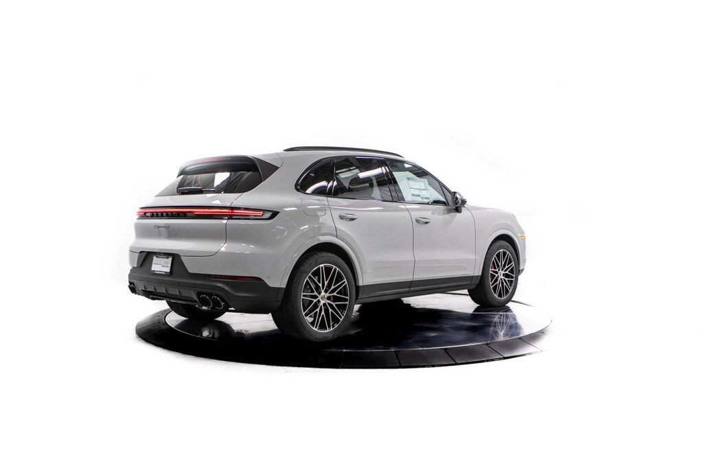 Chalk 2026 Porsche Cayenne S AWD 8-Speed Automatic with Tiptronic V8 Black Leather, 10 Speakers, 4-Wheel Disc Brakes, 8-Way Power Seats, ABS brakes, Adaptive Cruise Control with Lane Keep Assist (LKA), Adaptive suspension, Air Conditioning, Air Quality System, Alloy wheels, AM/FM radio: SiriusXM w/360L, Apple CarPlay & Android Auto, Artificial Leather Seat Trim, Audio memory, Auto-dimming door mirrors, Auto-dimming Rear-View mirror, Automatic temperature control, BOSE Surround Sound System, Brake assist, Bumpers: body-color, Compass, Delay-off headlights, Driver door bin, Driver vanity mirror, Dual front impact airbags, Dual front side impact airbags, Electronic Stability Control, Exterior Parking Camera Rear, Four wheel independent suspension, Front anti-roll bar, Front Bucket Seats, Front Center Armrest, Front dual zone A/C, Front reading lights, Fully automatic headlights, Garage door transmitter: HomeLink, Heated door mirrors, Heated front seats, Heated GT Sport Steering Wheel in Leather, Heated steering wheel, HVAC memory, Illuminated entry, Knee airbag, Leather steering wheel, Low tire pressure warning, Memory seat, Navigation System, Occupant sensing airbag, Outside temperature display, Overhead airbag, Overhead console, Panic alarm, Panoramic Roof System, Passenger door bin, Passenger vanity mirror, Porsche Communication Management, Porsche Crest on Front Headrests, Porsche Logo on Rear in High Gloss Black, Power door mirrors, Power driver seat, Power Liftgate, Power passenger seat, Power steering, Power windows, Premium Package, Preparation For Porsche Front and Rear Dashcam, Radio data system, Rain sensing wipers, Rear anti-roll bar, Rear fog lights, Rear Heated Seats, Rear reading lights, Rear seat center armrest, Rear side impact airbag, Rear window defroster, Rear window wiper, Remote keyless entry, Roof Rails in Black Aluminum Finish, Security system, Speed control, Speed-sensing steering, Split folding rear seat, Spoiler, Sport Tailpipes in Dark Bronze, Steering wheel mounted audio controls, Tachometer, Telescoping steering wheel, Tilt steering wheel, Traction control, Trip computer, Turn signal indicator mirrors, Under Door Puddle Light Projectors, Variably intermittent wipers, Voltmeter, Wheels: 20 Cayenne S, Wheels: 21 RS Spyder Design, Window Trim in High Gloss Black, Black Leather.
