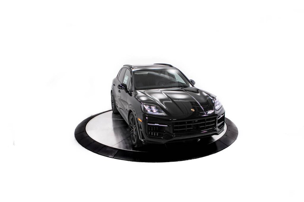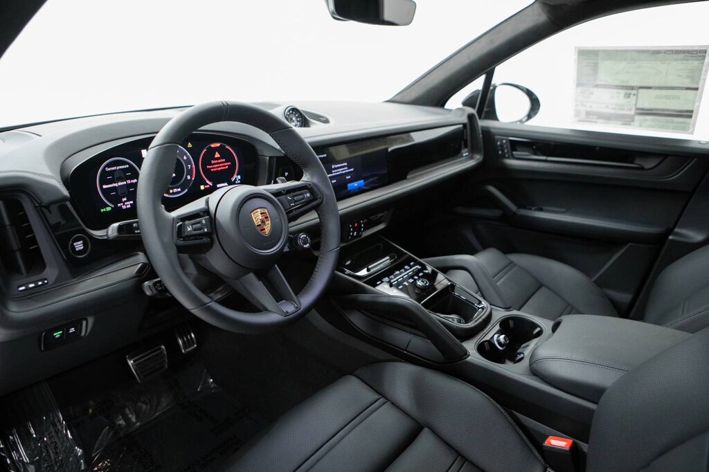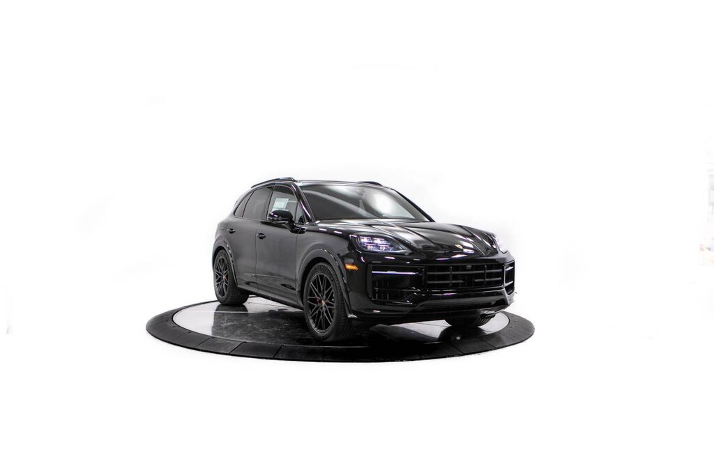 Black 2026 Porsche Cayenne GTS AWD 8-Speed Automatic with Tiptronic V8 Black Leather, 14 Speakers, 14-Way Power Seats with Comfort Memory, 4-Wheel Disc Brakes, 4-Zone Climate Control, 8-Way Sport Seats, ABS brakes, Adaptive Cruise Control with Lane Keep Assist (LKA), Adaptive suspension, Air Conditioning, Alloy wheels, AM/FM radio: SiriusXM w/360L, Apple CarPlay & Android Auto, Audio memory, Auto High-beam Headlights, Auto-dimming door mirrors, Auto-dimming Rear-View mirror, Auto-leveling suspension, Automatic temperature control, Brake assist, Bumpers: body-color, Compass, Delay-off headlights, Driver door bin, Driver vanity mirror, Dual front impact airbags, Dual front side impact airbags, Electronic Stability Control, Exclusive Design Fuel Cap, Exterior Parking Camera Rear, Four wheel independent suspension, Front anti-roll bar, Front Bucket Seats, Front Center Armrest, Front dual zone A/C, Front reading lights, Front Ventilated Seats, Fully automatic headlights, Garage door transmitter: HomeLink, Heated door mirrors, Heated front seats, Heated GT Sport Steering Wheel in Leather, Heated steering wheel, HVAC memory, Illuminated entry, Knee airbag, Leather/Race-Tex Seat Trim, Low tire pressure warning, Memory seat, Navigation System, Occupant sensing airbag, Outside temperature display, Overhead airbag, Overhead console, Panic alarm, Panoramic Roof System, Passenger door bin, Passenger vanity mirror, Porsche Communication Management, Porsche Crest on Front and Rear Headrests, Porsche Logo and Model Designation on Rear in Black, Power door mirrors, Power driver seat, Power Liftgate, Power passenger seat, Power steering, Power windows, Premium Package Plus, Preparation For Porsche Front and Rear Dashcam, Radio data system, Rain sensing wipers, Rear anti-roll bar, Rear Axle Steering, Rear fog lights, Rear Heated Seats, Rear reading lights, Rear seat center armrest, Rear side impact airbag, Rear window defroster, Rear window wiper, Remote keyless entry, Roof Rails in Black Aluminum Finish, Security system, Speed control, Speed-sensing steering, Split folding rear seat, Spoiler, Sport Chrono Package, Sport steering wheel, Steering wheel mounted audio controls, Tachometer, Telescoping steering wheel, Tilt steering wheel, Traction control, Trip computer, Turn signal indicator mirrors, Under Door Puddle Light Projectors, Variably intermittent wipers, Voltmeter, Wheels: 21 RS Spyder Design in Anthracite Grey, Wheels: 21 RS Spyder Design in Satin Black, Black Leather.