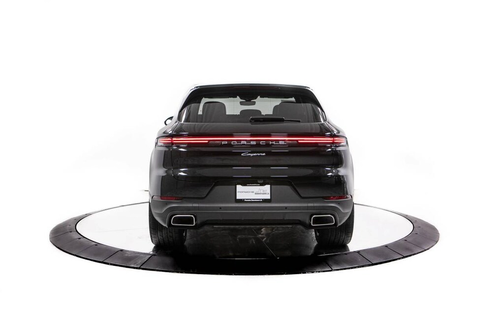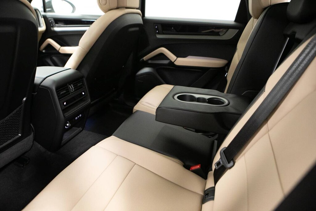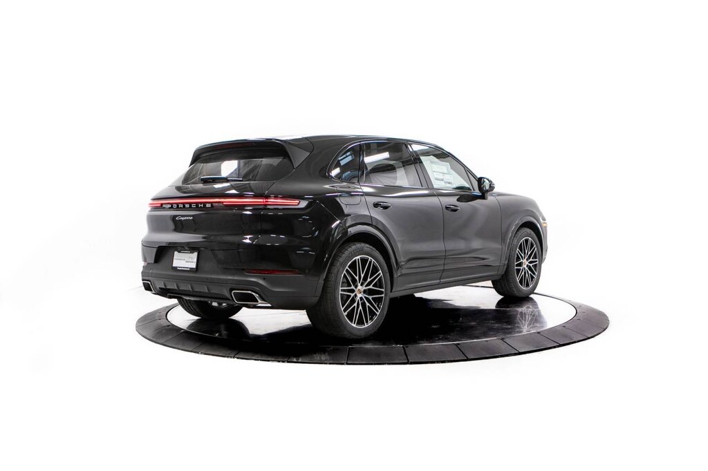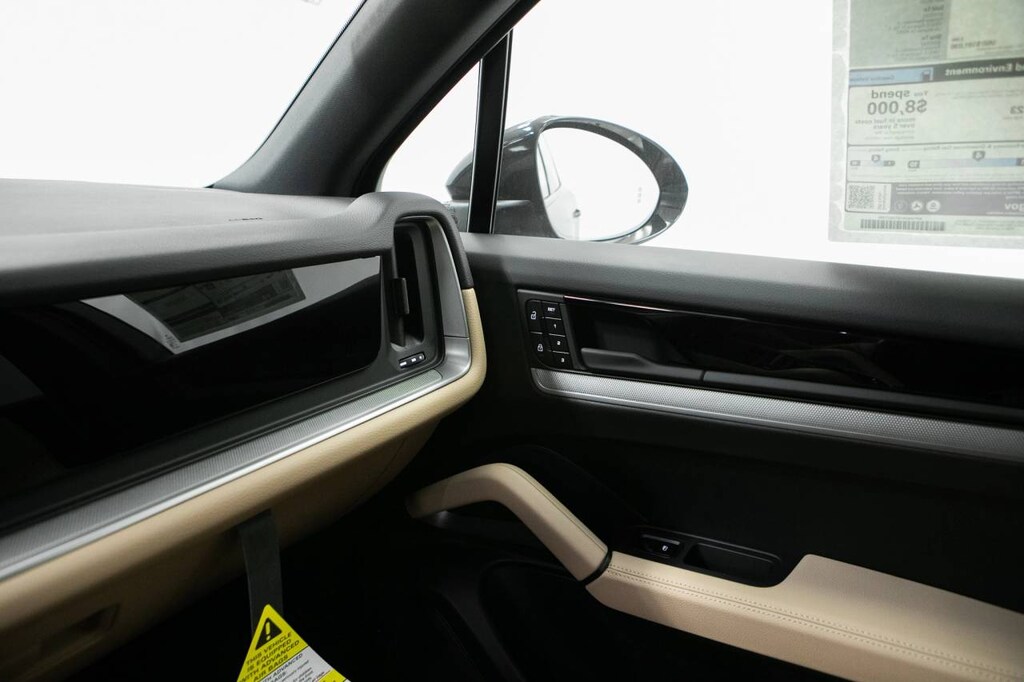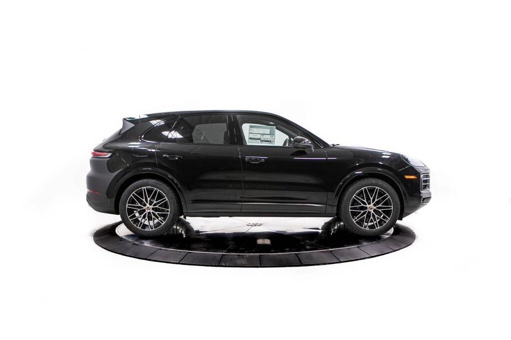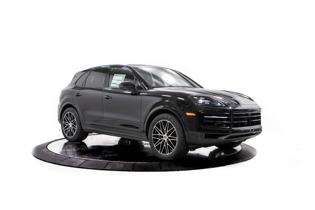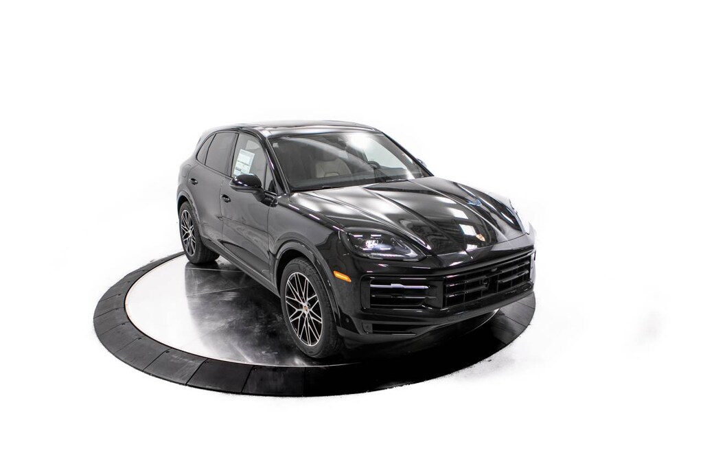 Black 2026 Porsche Cayenne AWD 8-Speed Automatic with Tiptronic 3.0L V6 Black Leather, 10 Speakers, 14-Way Power Seats with Comfort Memory, 4-Wheel Disc Brakes, 8-Way Power Seats, ABS brakes, Adaptive Cruise Control with Lane Keep Assist (LKA), Adaptive suspension, Air Conditioning, Alloy wheels, AM/FM radio: SiriusXM w/360L, Apple CarPlay & Android Auto, Artificial Leather Seat Trim, Audio memory, Auto-dimming door mirrors, Auto-dimming Rear-View mirror, Automatic temperature control, BOSE Surround Sound System, Brake assist, Bumpers: body-color, Compass, Delay-off headlights, Driver door bin, Driver vanity mirror, Dual front impact airbags, Dual front side impact airbags, Electronic Stability Control, Exterior Parking Camera Rear, Four wheel independent suspension, Front anti-roll bar, Front Bucket Seats, Front Center Armrest, Front dual zone A/C, Front reading lights, Front Ventilated Seats, Fully automatic headlights, Garage door transmitter: HomeLink, Heated door mirrors, Heated front seats, Heated GT Sport Steering Wheel in Leather, Heated steering wheel, HVAC memory, Illuminated entry, Knee airbag, Leather steering wheel, Low tire pressure warning, Memory seat, Navigation System, Occupant sensing airbag, Outside temperature display, Overhead airbag, Overhead console, Panic alarm, Panoramic Roof System, Passenger door bin, Passenger vanity mirror, Porsche Communication Management, Power door mirrors, Power driver seat, Power Liftgate, Power passenger seat, Power steering, Power windows, Premium Package, Radio data system, Rain sensing wipers, Rear anti-roll bar, Rear fog lights, Rear Heated Seats, Rear reading lights, Rear seat center armrest, Rear side impact airbag, Rear window defroster, Rear window wiper, Remote keyless entry, Security system, Speed control, Speed-sensing steering, Split folding rear seat, Spoiler, Steering wheel mounted audio controls, Tachometer, Telescoping steering wheel, Tilt steering wheel, Traction control, Trip computer, Turn signal indicator mirrors, Under Door Puddle Light Projectors, Variably intermittent wipers, Voltmeter, Wheels: 20 Cayenne Design, Wheels: 21 RS Spyder Design, Window Trim in High Gloss Black, Black Leather.
