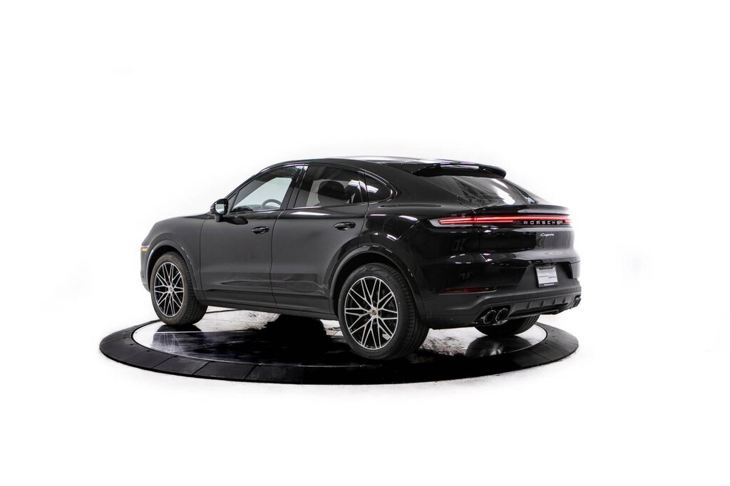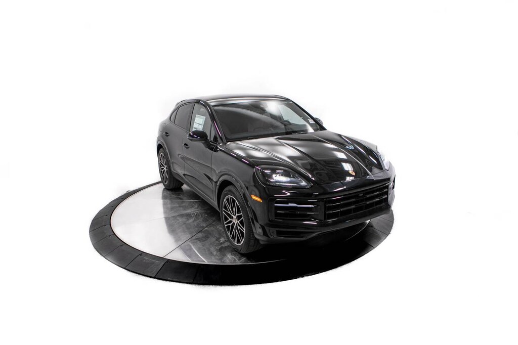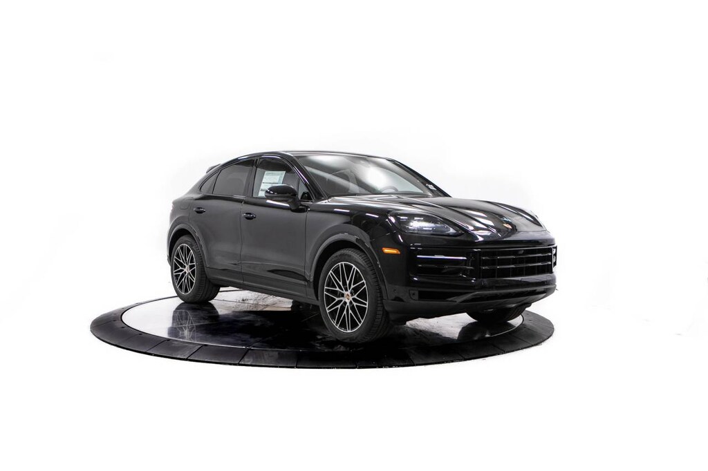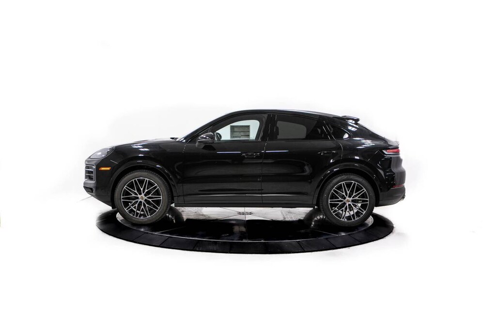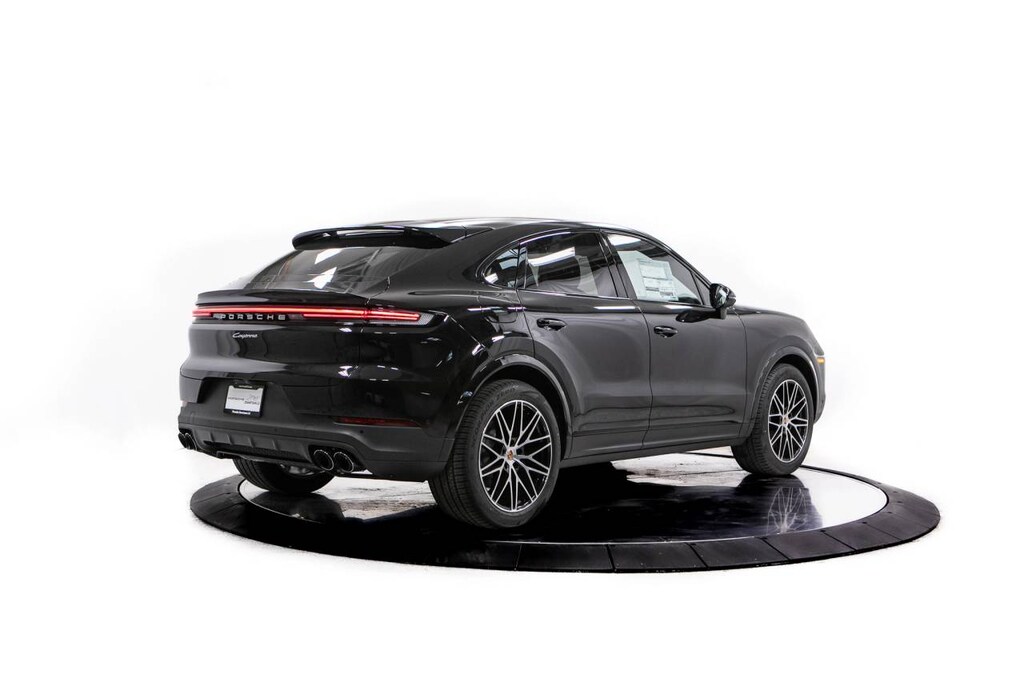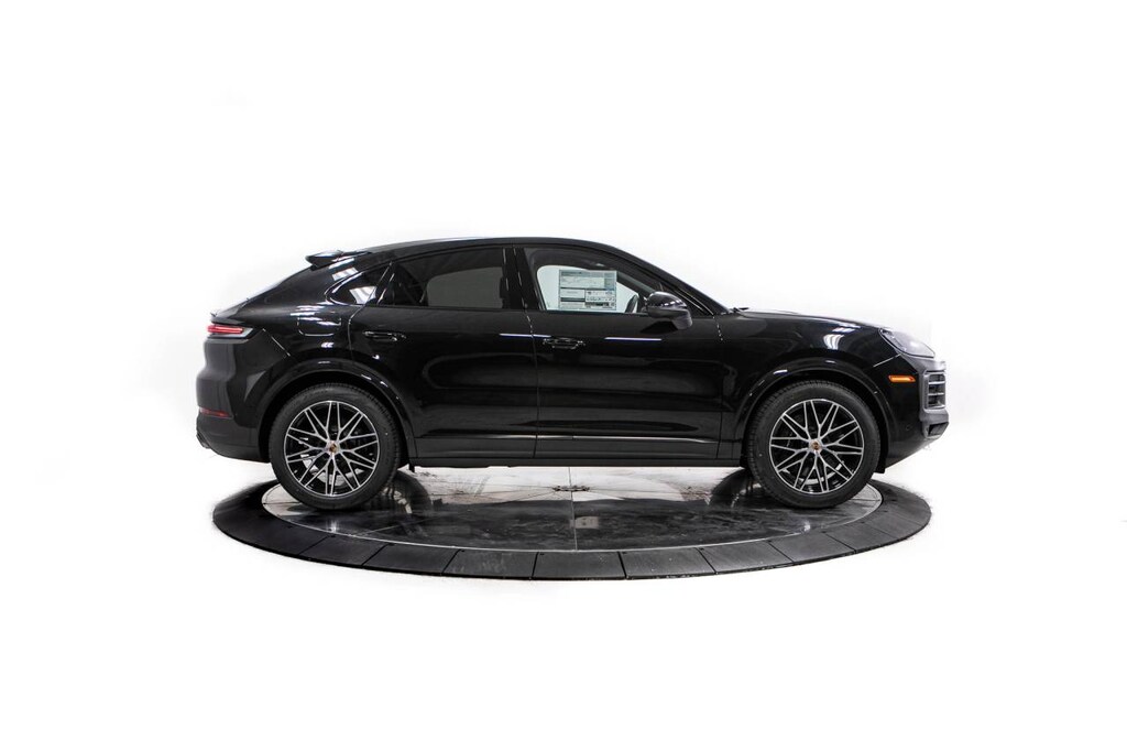 Black 2026 Porsche Cayenne Coupe AWD 8-Speed Automatic with Tiptronic 3.0L V6 10 Speakers, 14-Way Power Seats with Comfort Memory, 4-Wheel Disc Brakes, 8-Way Sport Seats, ABS brakes, Adaptive suspension, Air Conditioning, Alloy wheels, AM/FM radio: SiriusXM w/360L, Apple CarPlay & Android Auto, Audio memory, Auto-dimming door mirrors, Auto-dimming Rear-View mirror, Automatic temperature control, BOSE Surround Sound System, Brake assist, Bumpers: body-color, Compass, Delay-off headlights, Driver door bin, Driver vanity mirror, Dual front impact airbags, Dual front side impact airbags, Electronic Stability Control, Exterior Parking Camera Rear, Four wheel independent suspension, Front anti-roll bar, Front Bucket Seats, Front Center Armrest, Front dual zone A/C, Front reading lights, Front Ventilated Seats, Fully automatic headlights, Garage door transmitter: HomeLink, Heated door mirrors, Heated front seats, Heated steering wheel, HVAC memory, Illuminated entry, Knee airbag, Leather Seat Trim, Leather steering wheel, Low tire pressure warning, Memory seat, Navigation System, Occupant sensing airbag, Outside temperature display, Overhead airbag, Overhead console, Panic alarm, Passenger door bin, Passenger vanity mirror, Porsche Communication Management, Power door mirrors, Power driver seat, Power Liftgate, Power passenger seat, Power steering, Power windows, Radio data system, Rain sensing wipers, Rear anti-roll bar, Rear Comfort Seats (2+1), Rear fog lights, Rear reading lights, Rear seat center armrest, Rear side impact airbag, Rear window defroster, Remote keyless entry, Security system, Speed control, Speed-sensing steering, Split folding rear seat, Spoiler, Sport Tailpipes in Dark Bronze, Steering wheel mounted audio controls, Tachometer, Telescoping steering wheel, Tilt steering wheel, Traction control, Trip computer, Turn signal indicator mirrors, Variably intermittent wipers, Voltmeter, Wheels: 20 Cayenne Design, Wheels: 21 RS Spyder Design.