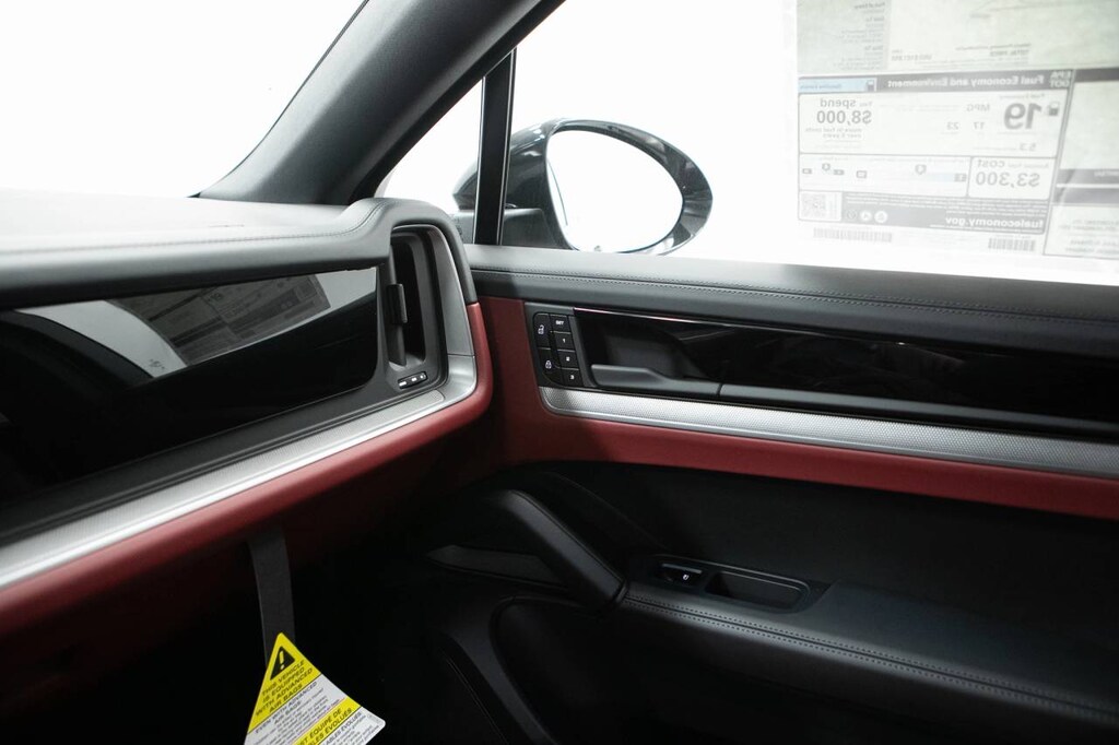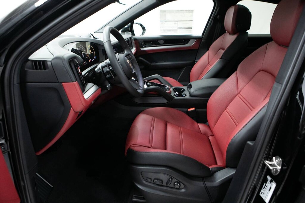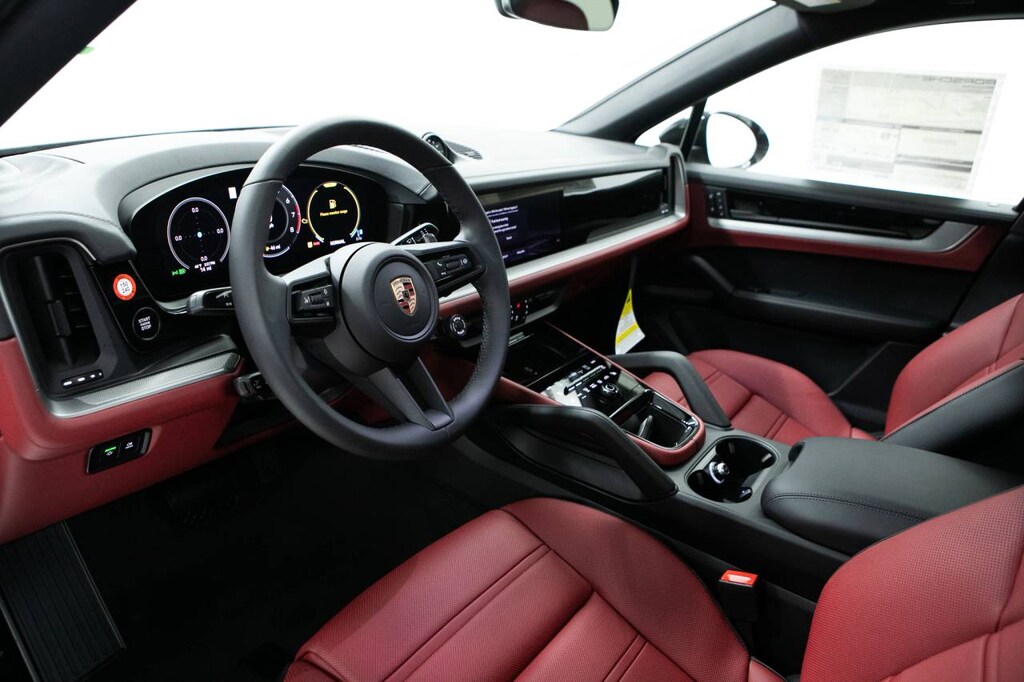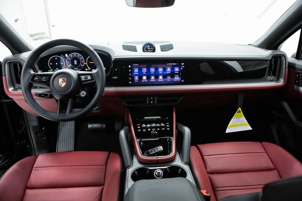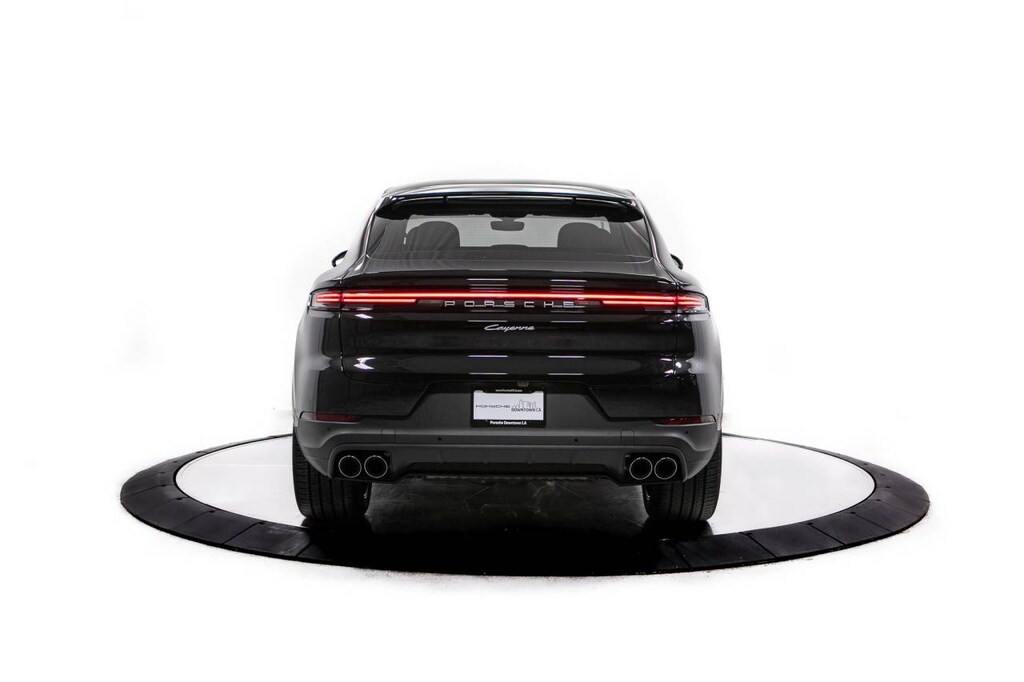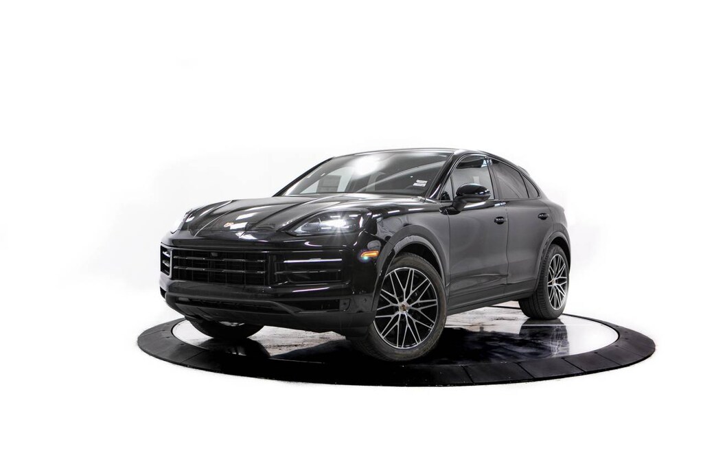 Black 2026 Porsche Cayenne Coupe AWD 8-Speed Automatic with Tiptronic 3.0L V6 10 Speakers, 14-Way Power Seats with Comfort Memory, 4-Wheel Disc Brakes, 8-Way Sport Seats, ABS brakes, Adaptive suspension, Air Conditioning, Alloy wheels, AM/FM radio: SiriusXM w/360L, Apple CarPlay & Android Auto, Audio memory, Auto-dimming door mirrors, Auto-dimming Rear-View mirror, Automatic temperature control, BOSE Surround Sound System, Brake assist, Bumpers: body-color, Compass, Delay-off headlights, Driver door bin, Driver vanity mirror, Dual front impact airbags, Dual front side impact airbags, Electronic Stability Control, Exterior Parking Camera Rear, Four wheel independent suspension, Front anti-roll bar, Front Bucket Seats, Front Center Armrest, Front dual zone A/C, Front reading lights, Front Ventilated Seats, Fully automatic headlights, Garage door transmitter: HomeLink, Heated door mirrors, Heated front seats, Heated steering wheel, HVAC memory, Illuminated entry, Knee airbag, Leather Seat Trim, Leather steering wheel, Low tire pressure warning, Memory seat, Navigation System, Occupant sensing airbag, Outside temperature display, Overhead airbag, Overhead console, Panic alarm, Passenger door bin, Passenger vanity mirror, Porsche Communication Management, Power door mirrors, Power driver seat, Power Liftgate, Power passenger seat, Power steering, Power windows, Radio data system, Rain sensing wipers, Rear anti-roll bar, Rear Comfort Seats (2+1), Rear fog lights, Rear reading lights, Rear seat center armrest, Rear side impact airbag, Rear window defroster, Remote keyless entry, Security system, Speed control, Speed-sensing steering, Split folding rear seat, Spoiler, Sport Tailpipes in Dark Bronze, Steering wheel mounted audio controls, Tachometer, Telescoping steering wheel, Tilt steering wheel, Traction control, Trip computer, Turn signal indicator mirrors, Variably intermittent wipers, Voltmeter, Wheels: 20 Cayenne Design, Wheels: 21 RS Spyder Design.